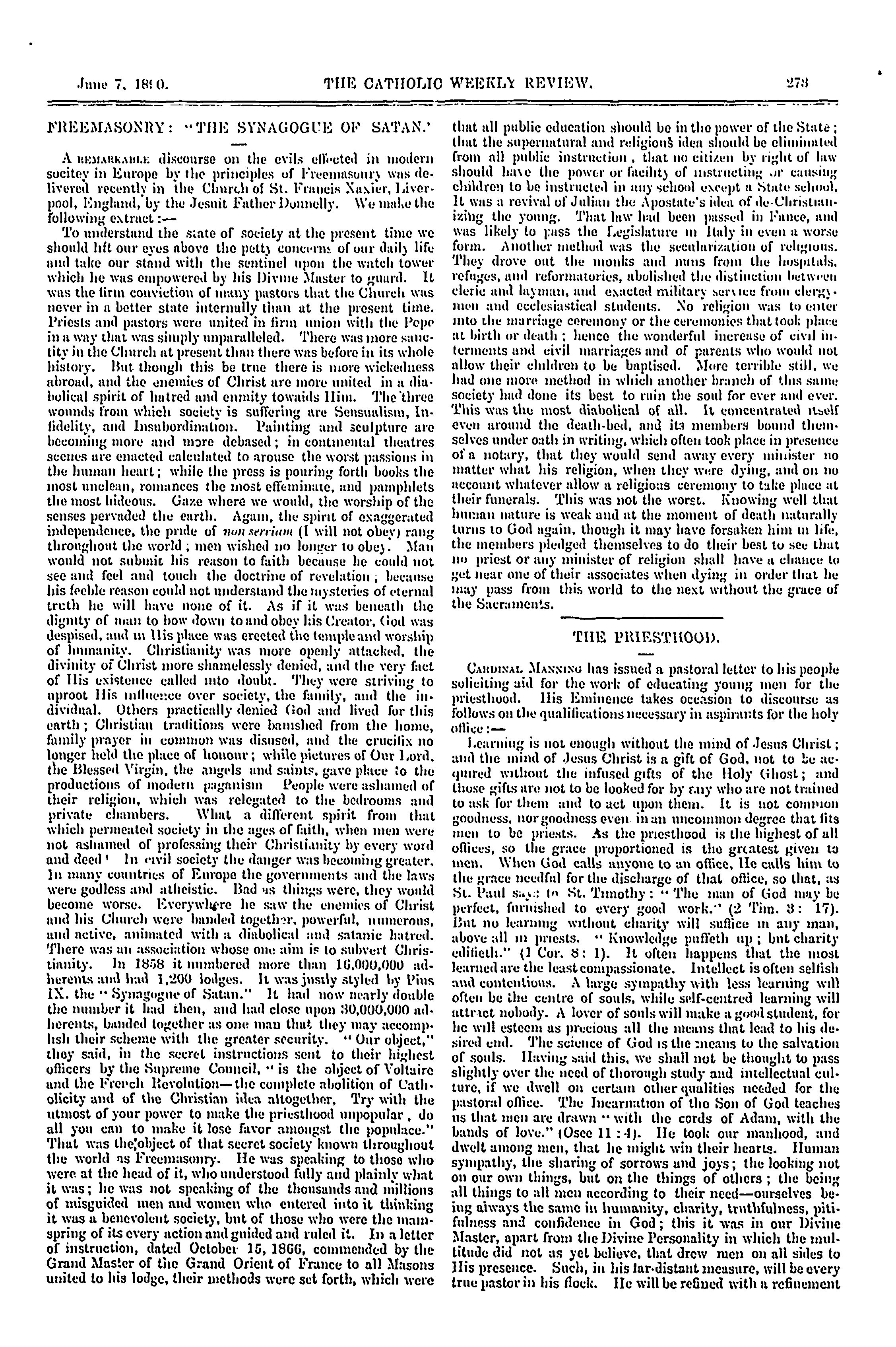 The Catholic weekly review : [i.e. 17] (June 7, 1890)]