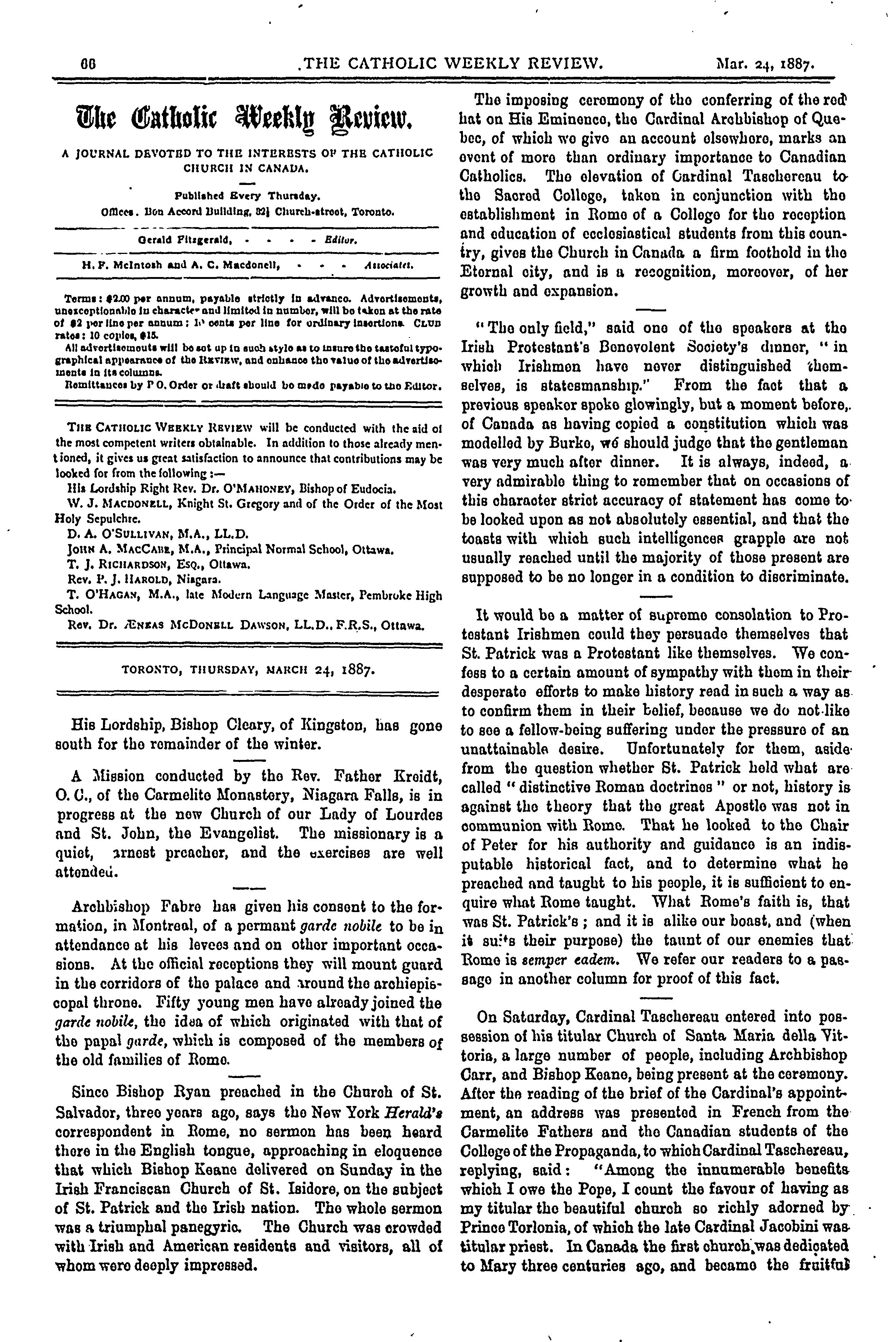 - The Catholic weekly review [Vol. 1, no. 6 (Mar. 24, 1887)]