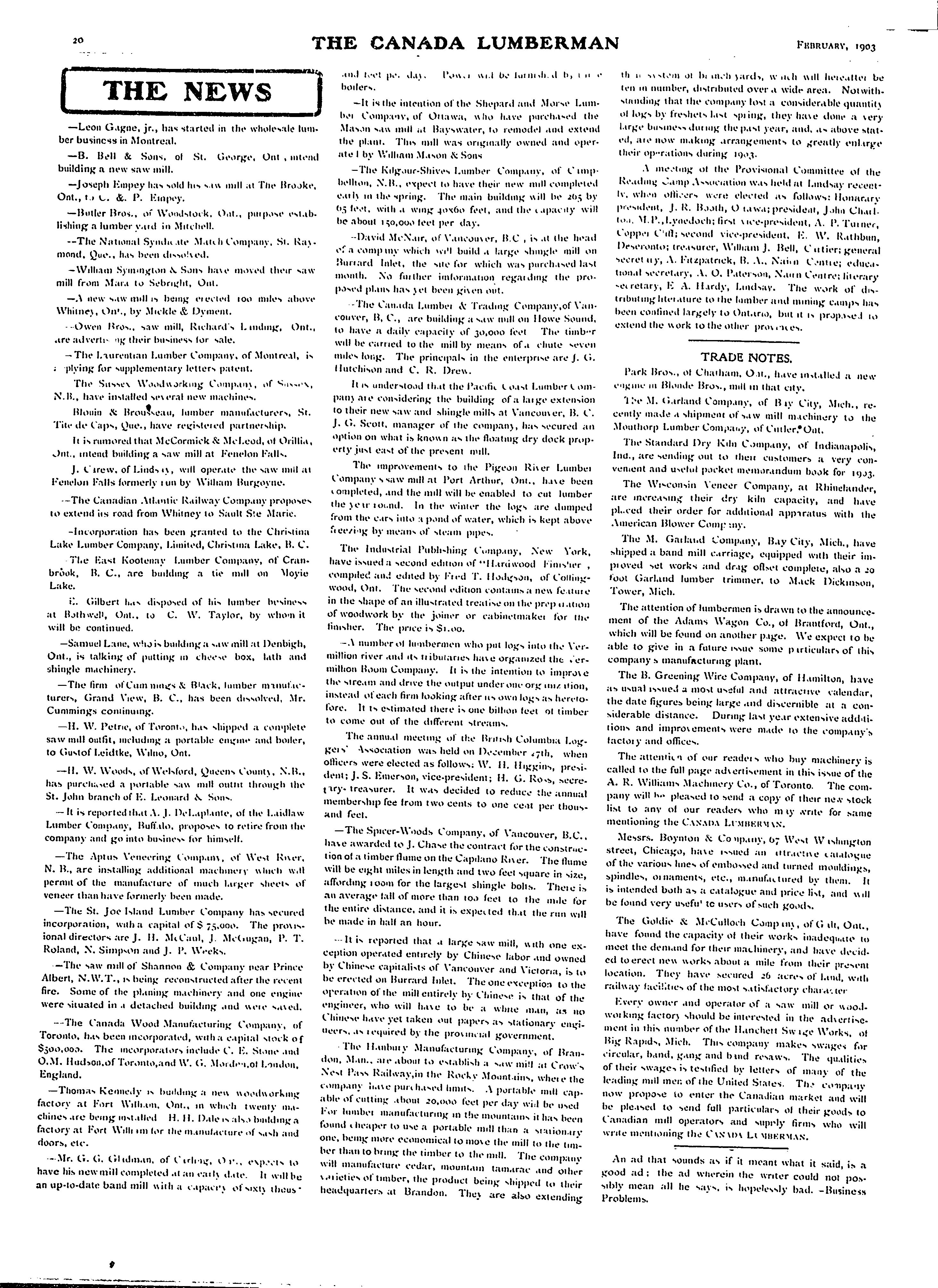 - The Canada lumberman [Vol. 23 [i.e. 24], no. 2 (Feb. 1903)]