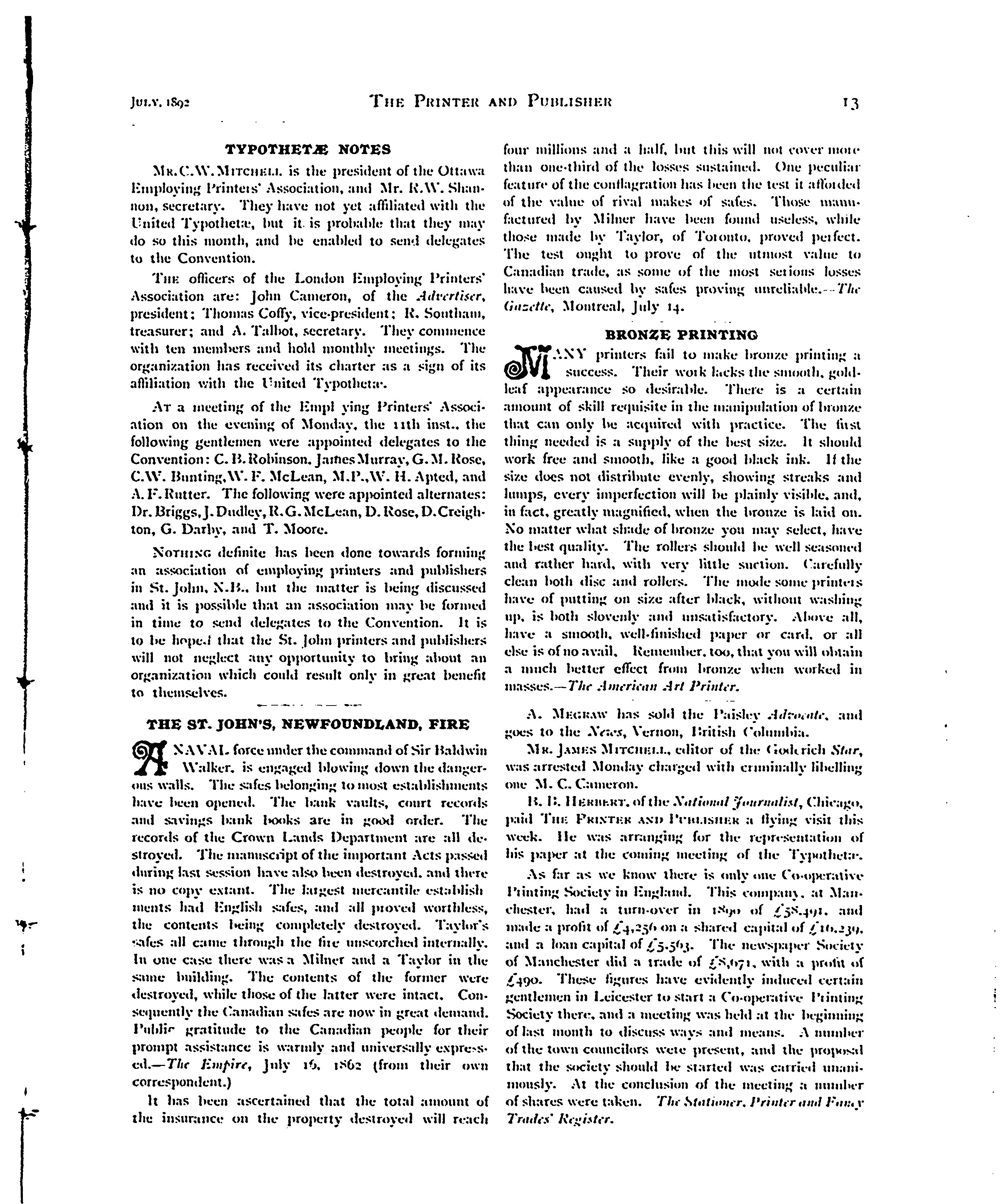 - The Canadian printer & publisher [Vol. 1, no. 3 (July 1892)]
