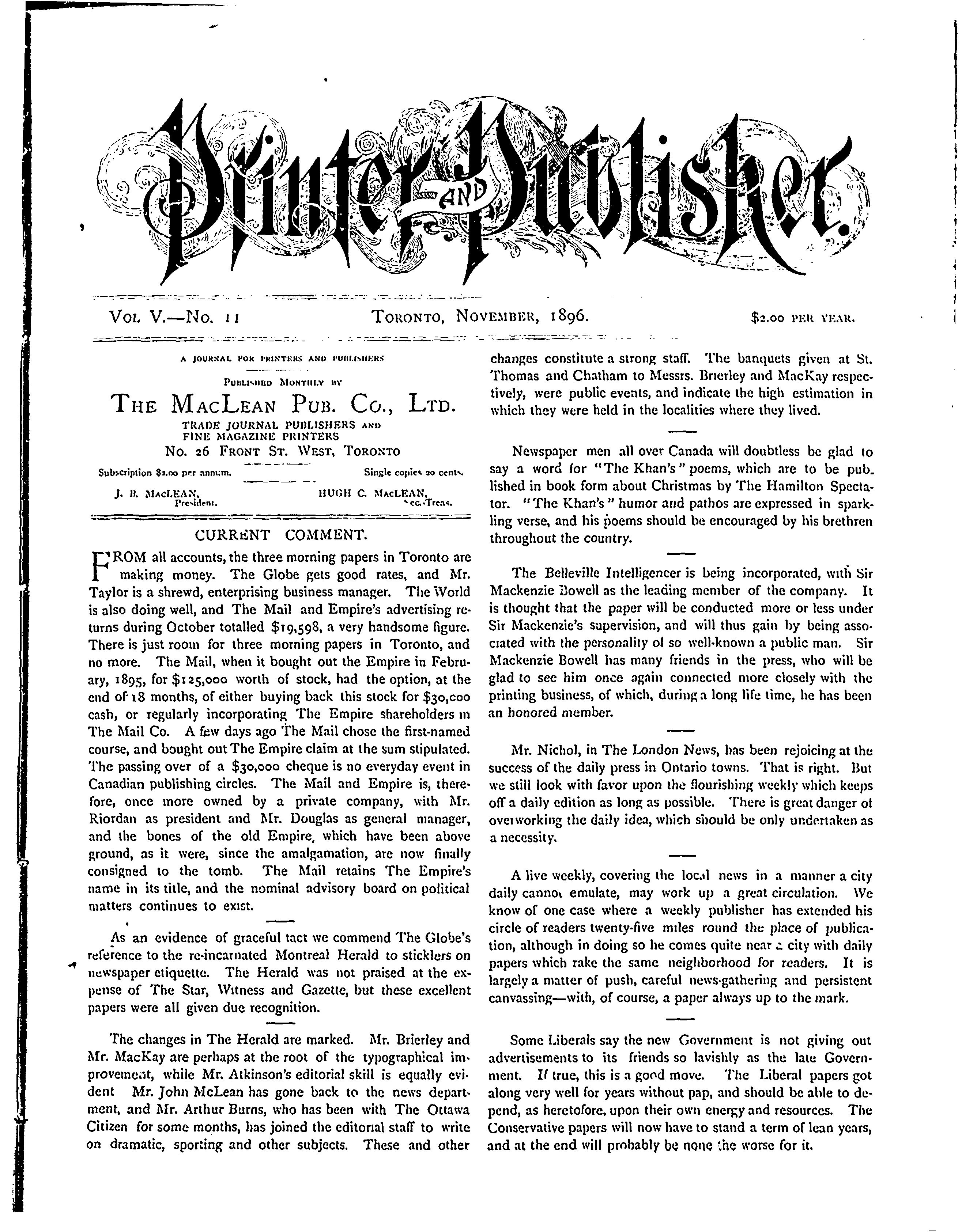 The Canadian printer & publisher : [Vol. 5, no. 11 (Nov. 1896)]