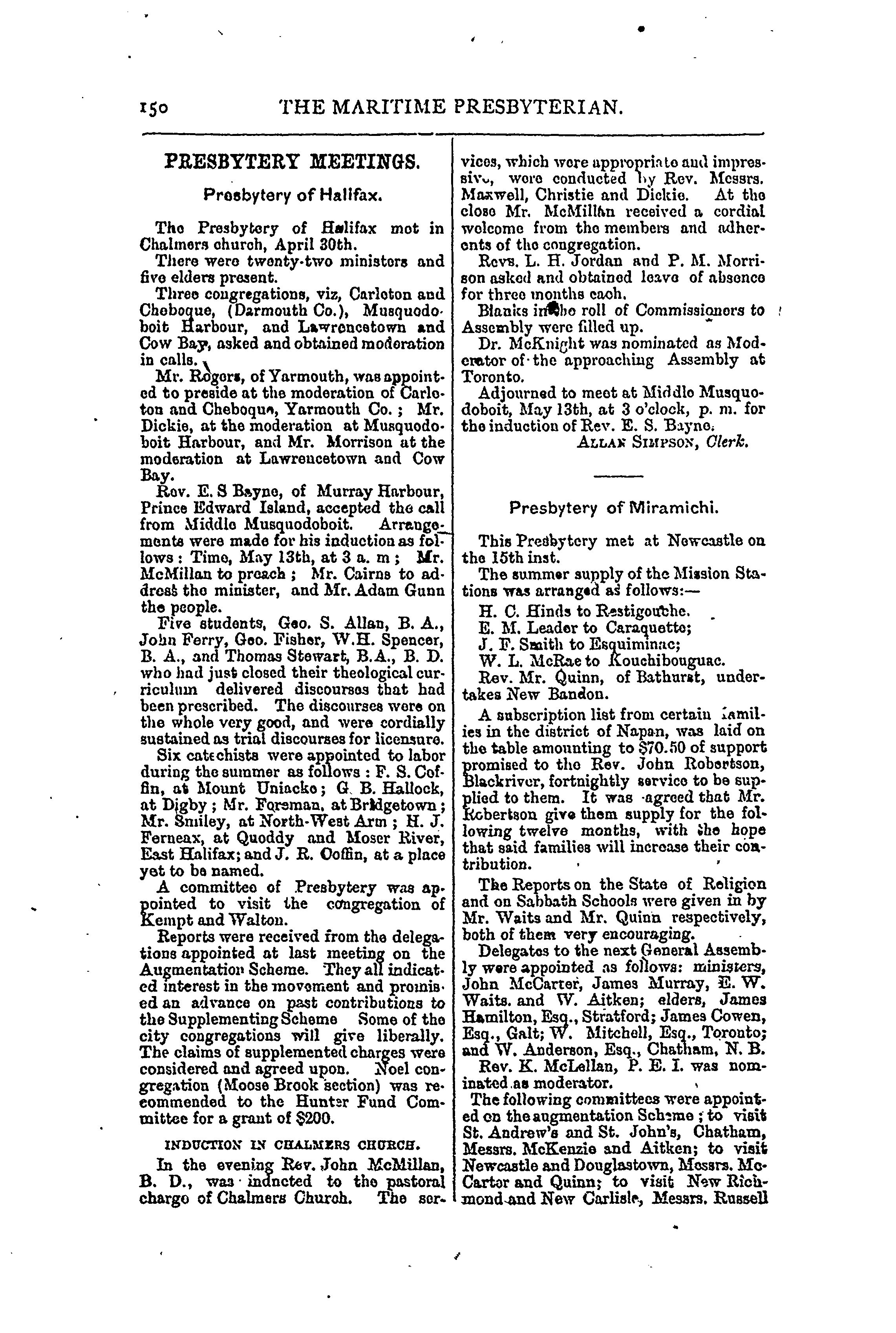 - The Maritime Presbyterian [Vol. 4, no. 5 (May 15, 1884)]