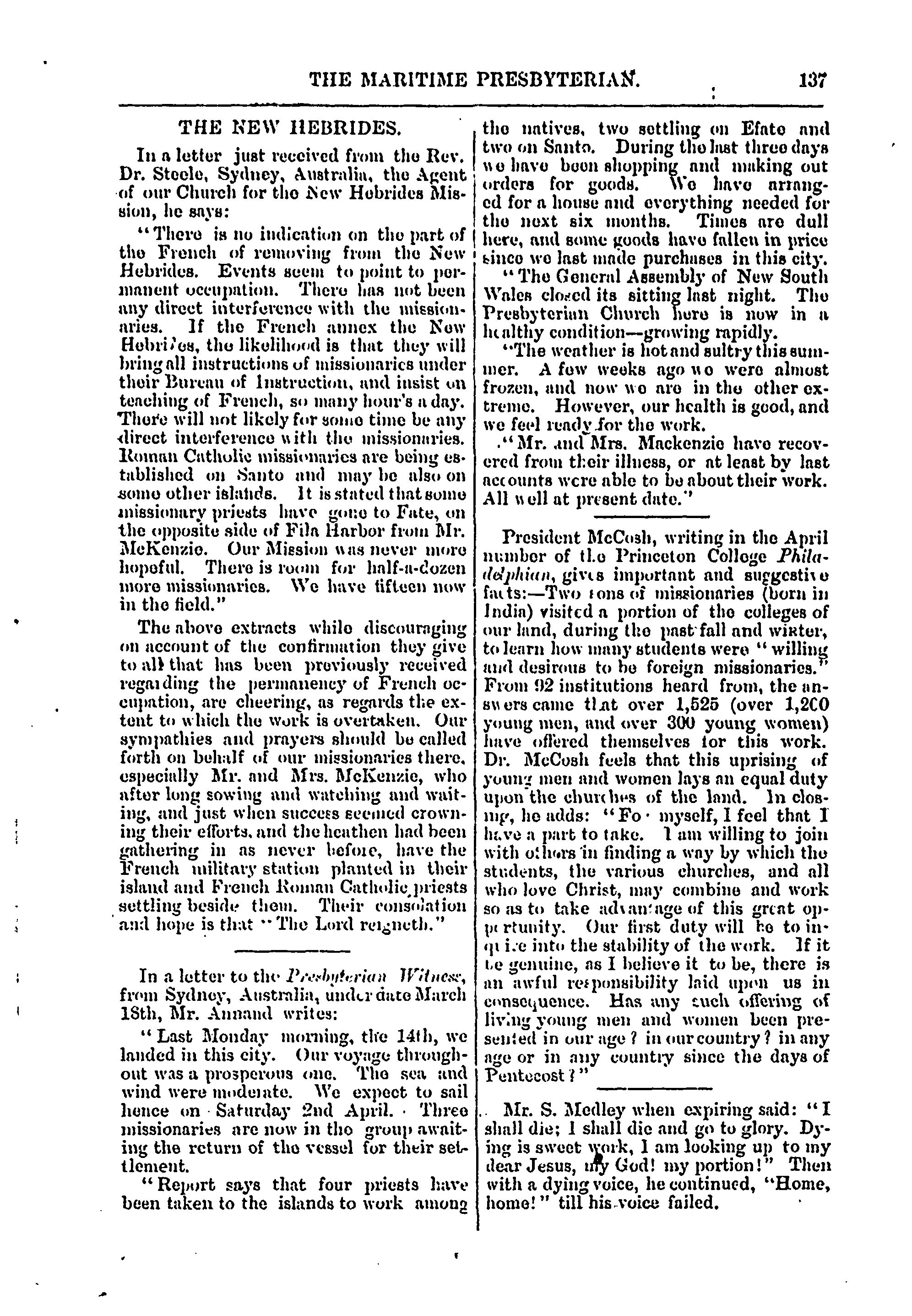 - The Maritime Presbyterian [Vol. 7, no. 5 (May 1887)]