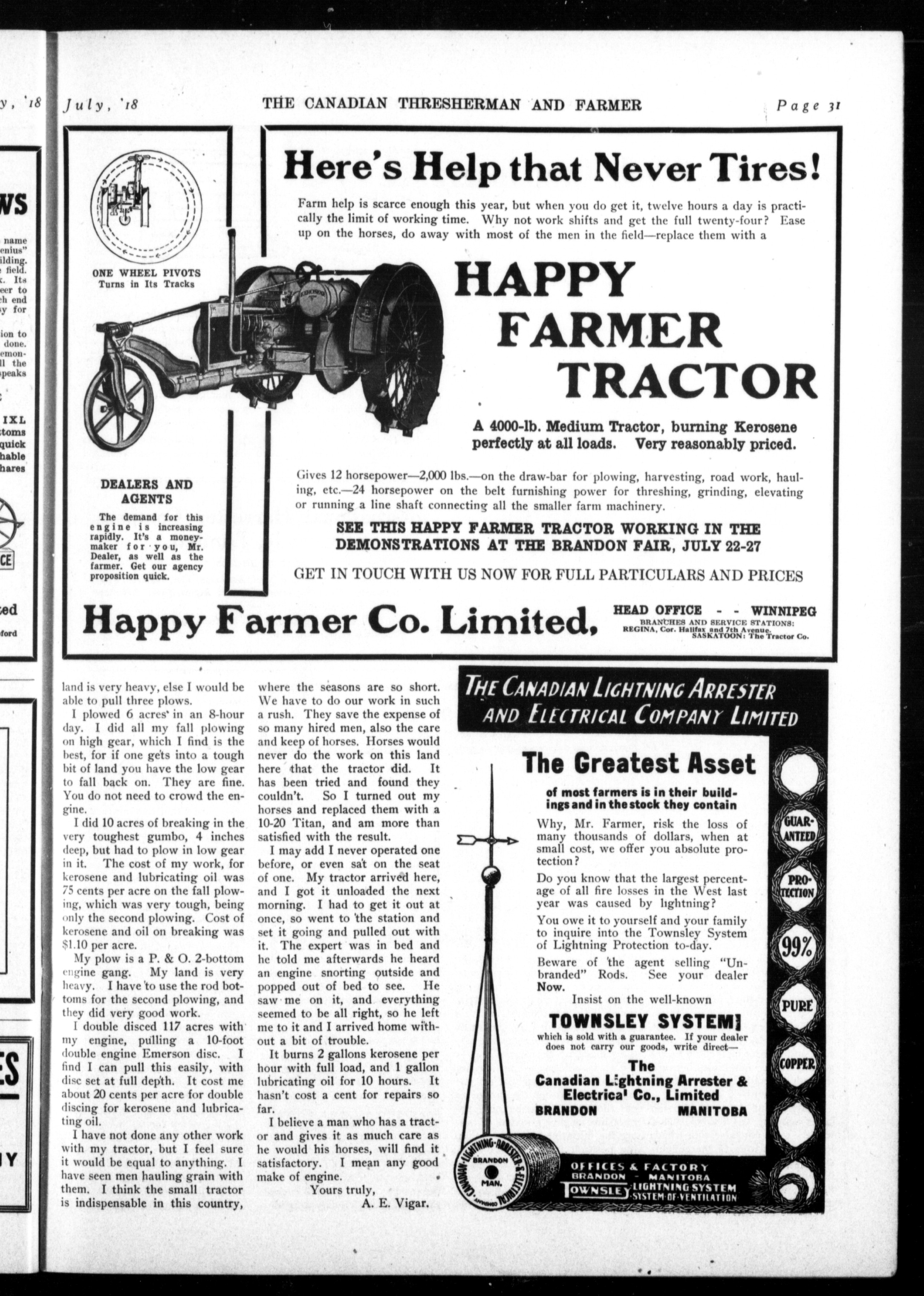 The Canadian thresherman and farmer : Vol. XXIII, No. 7 (July 1918)