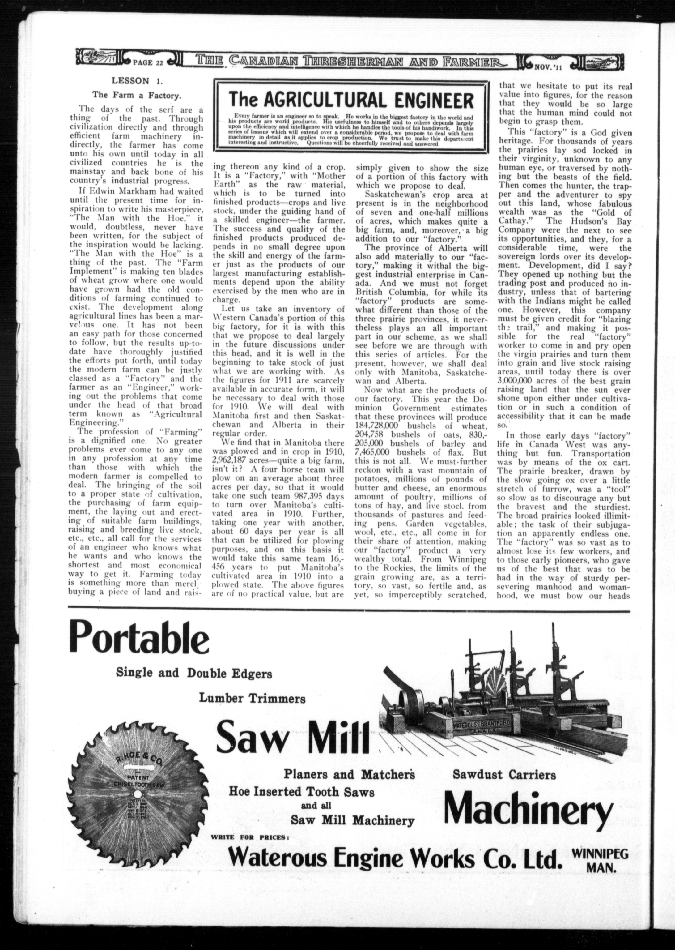 The Canadian thresherman and farmer : Vol. XVI, No. 11 (November 1911)