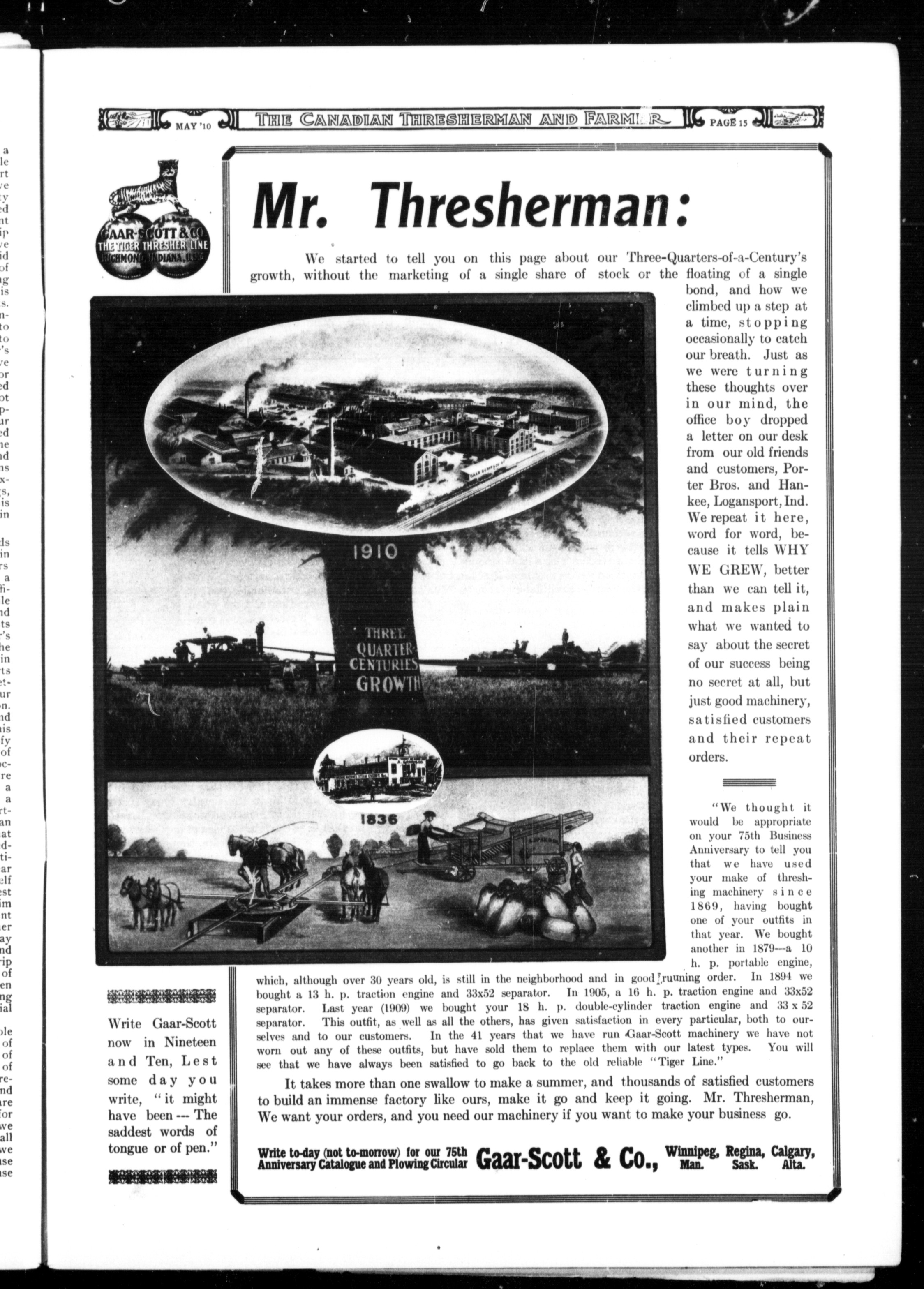 The Canadian thresherman and farmer : Vol. XV, No. 5 (May 1910)