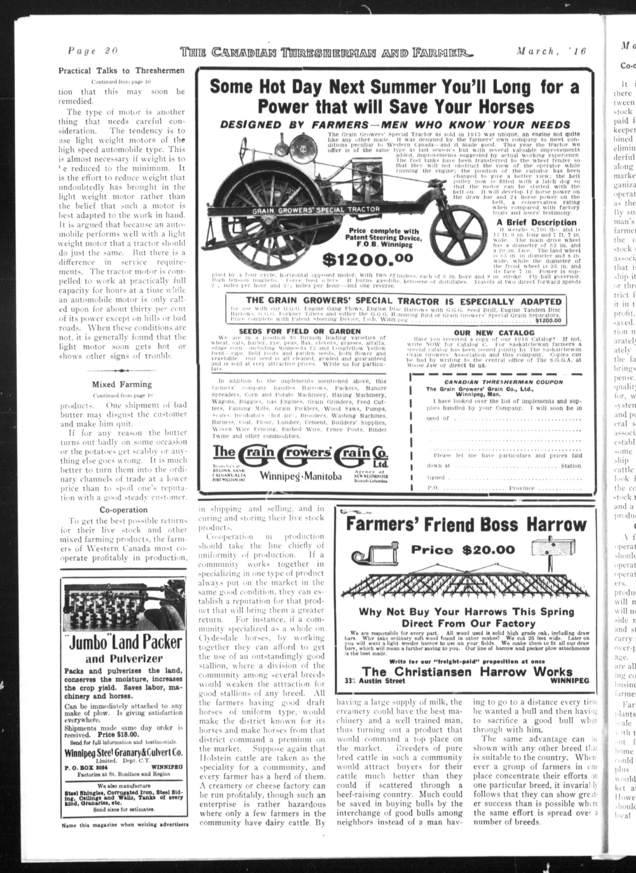 The Canadian thresherman and farmer : Vol. XXI, No. 3 (March 1916)