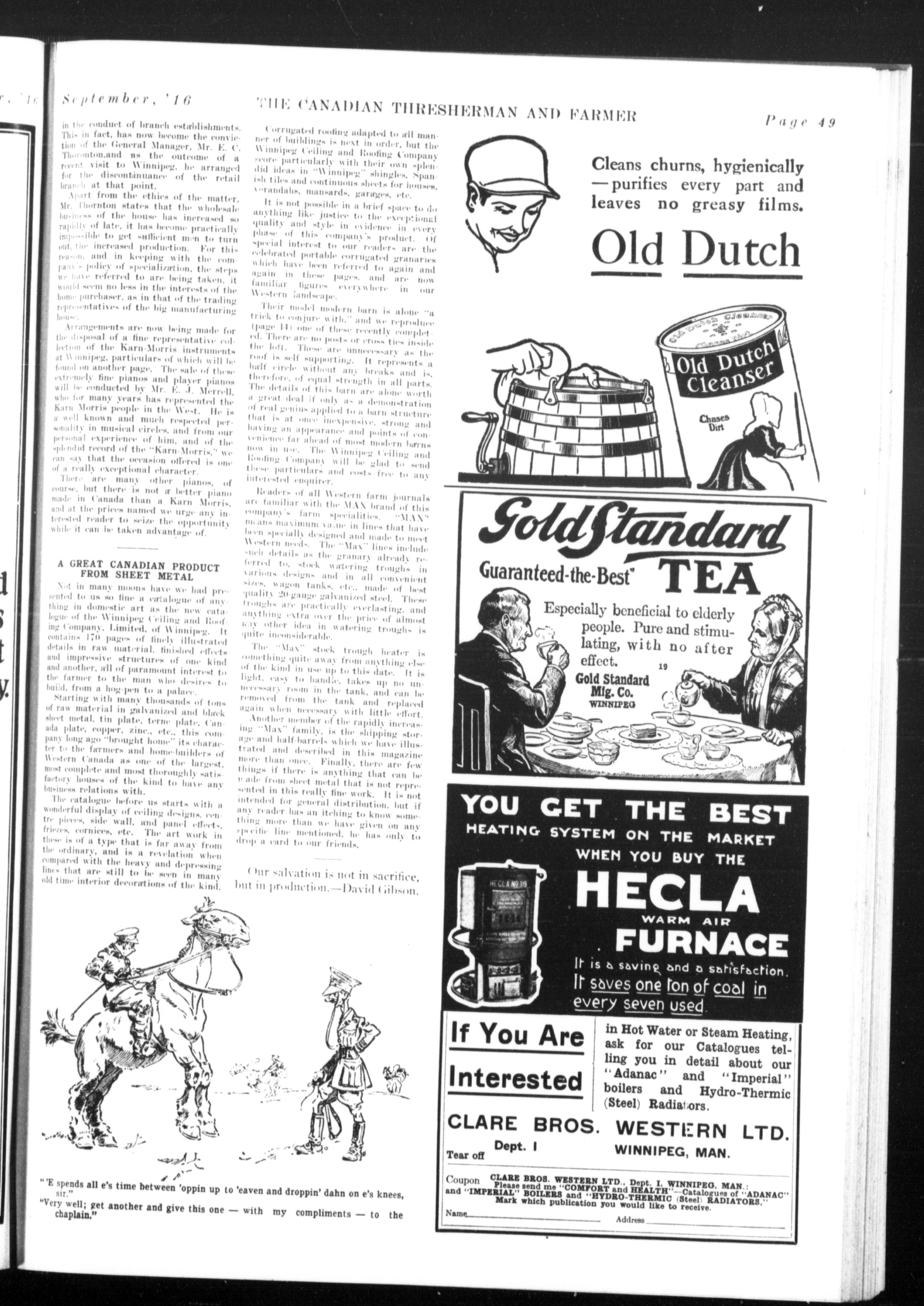 The Canadian thresherman and farmer : [Vol. XXI, No. 9] (September 1916)