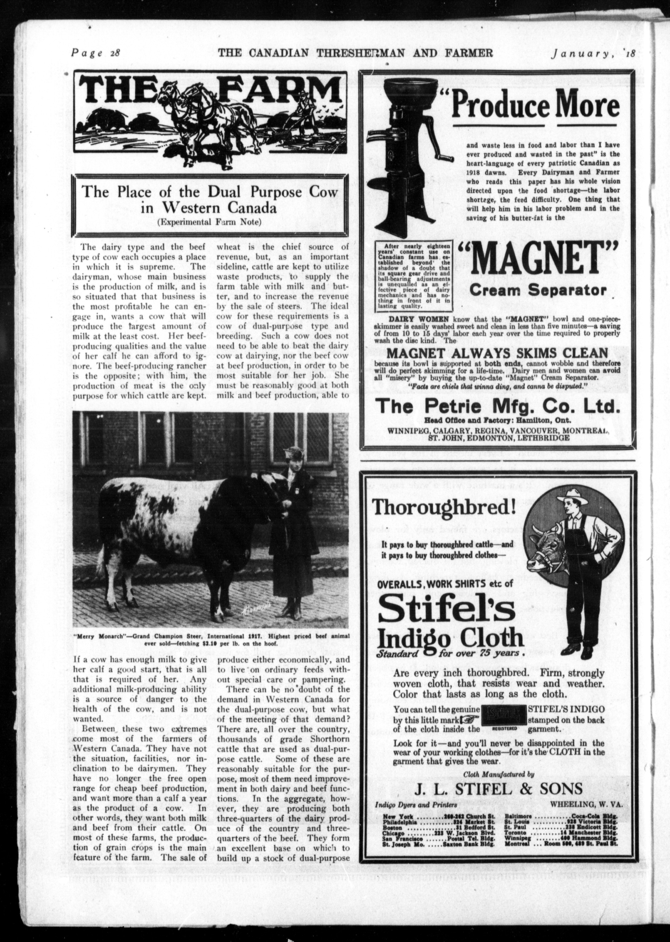 The Canadian thresherman and farmer : Vol. XXIII, No. 1 (January 1918)