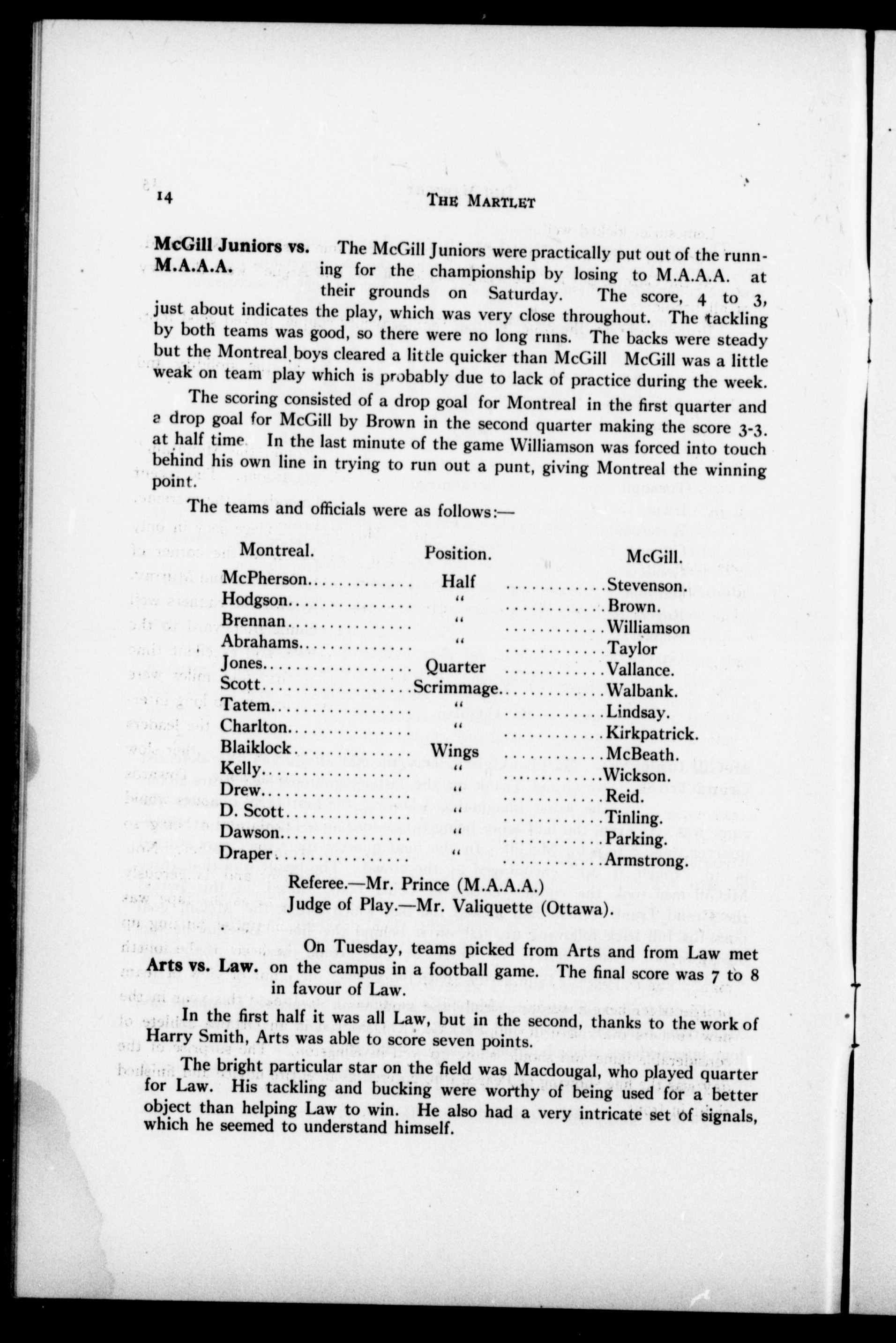 The McGill martlet : Vol. III, No. 6 (Nov. 10, 1910)