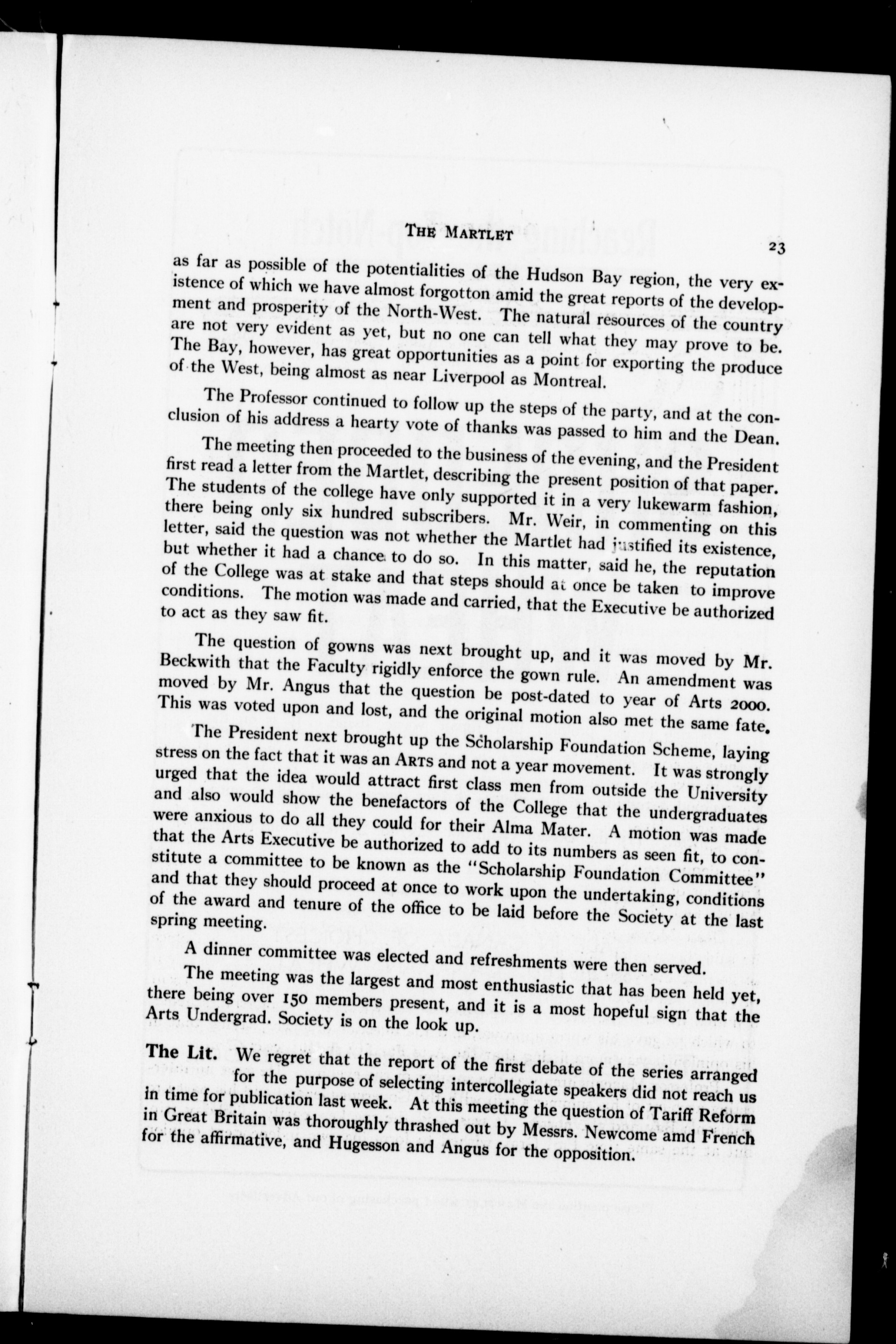 The McGill martlet : Vol. III, No. 6 (Nov. 10, 1910)