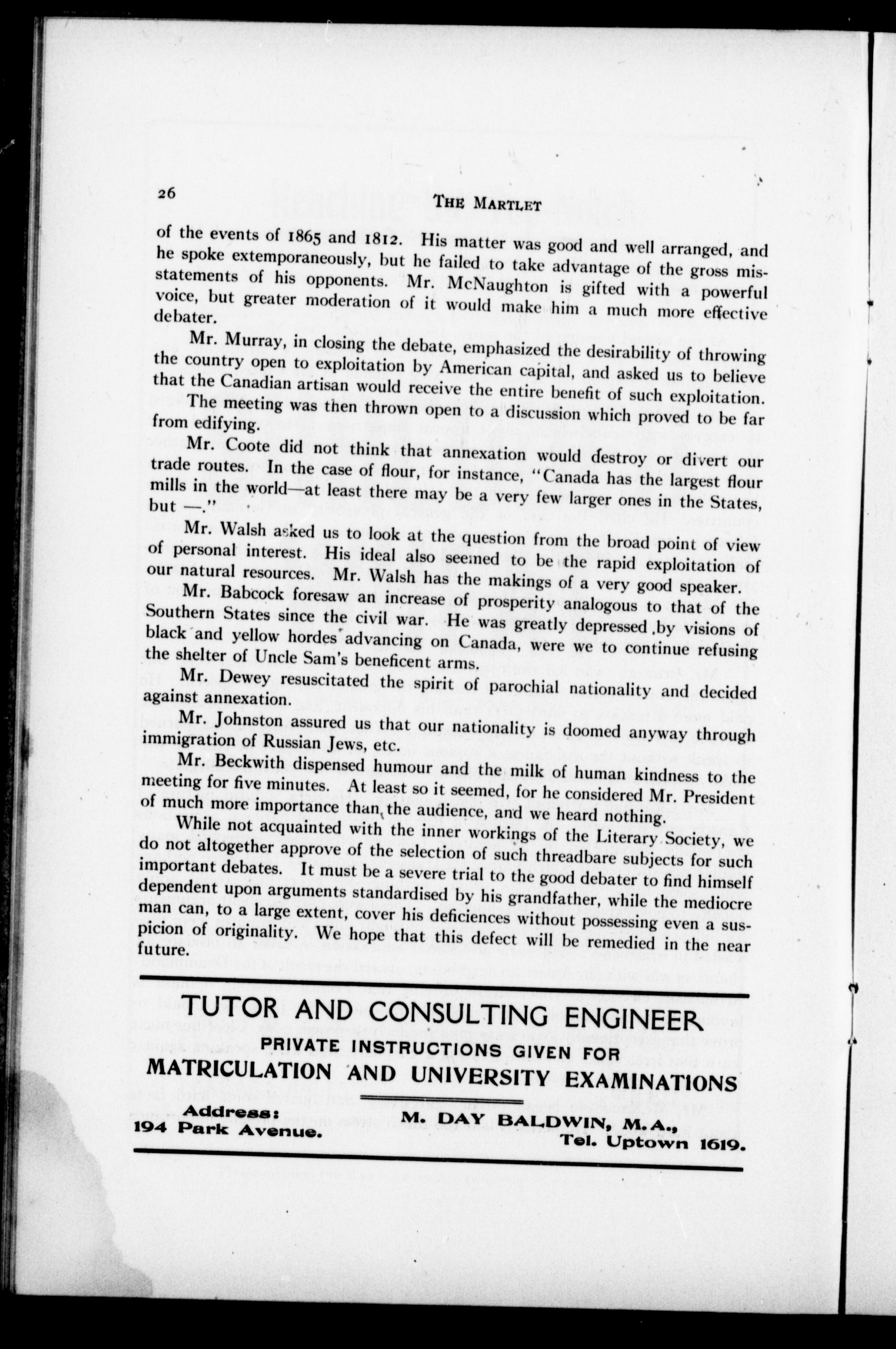 The McGill martlet : Vol. III, No. 6 (Nov. 10, 1910)