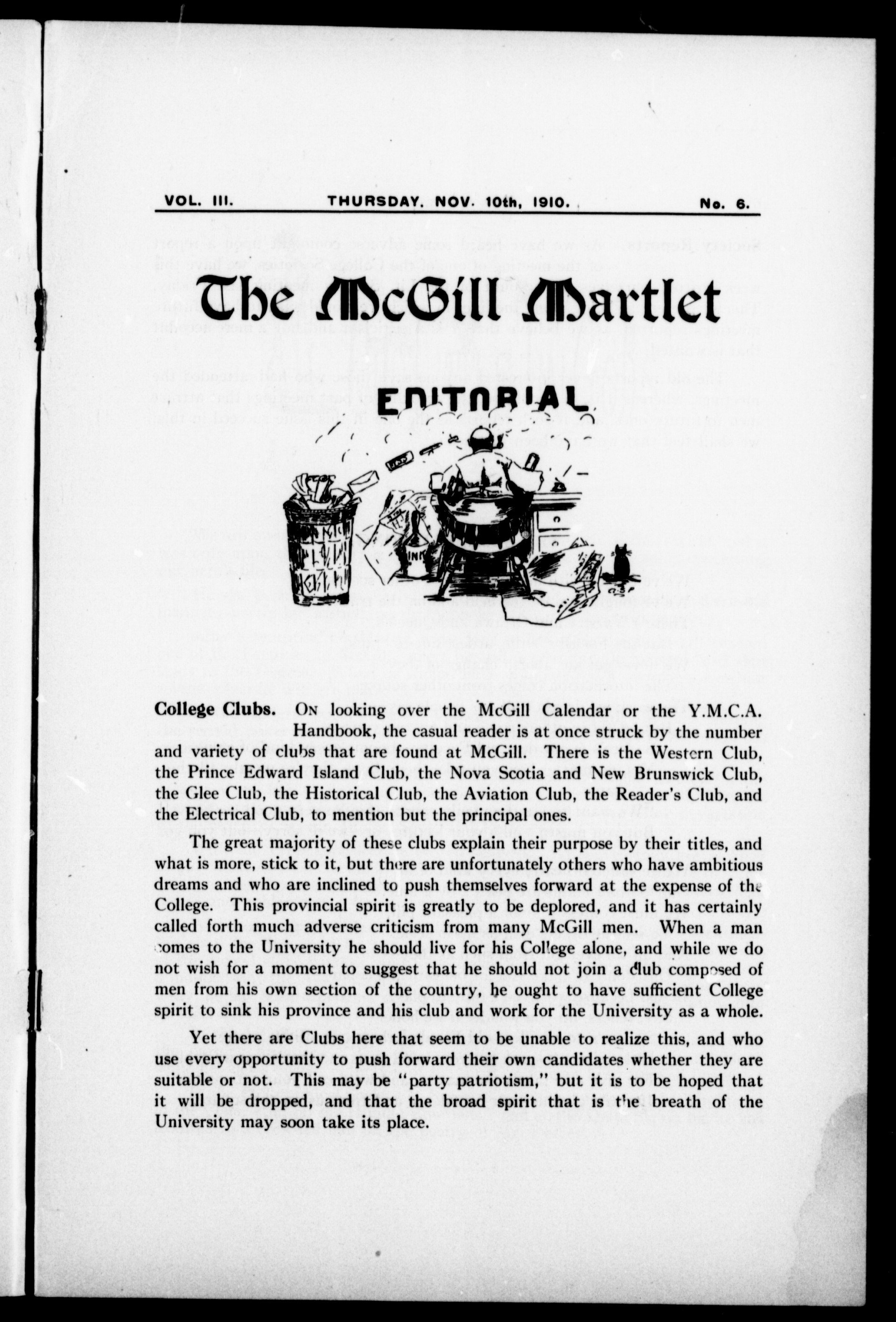 The McGill martlet : Vol. III, No. 6 (Nov. 10, 1910)