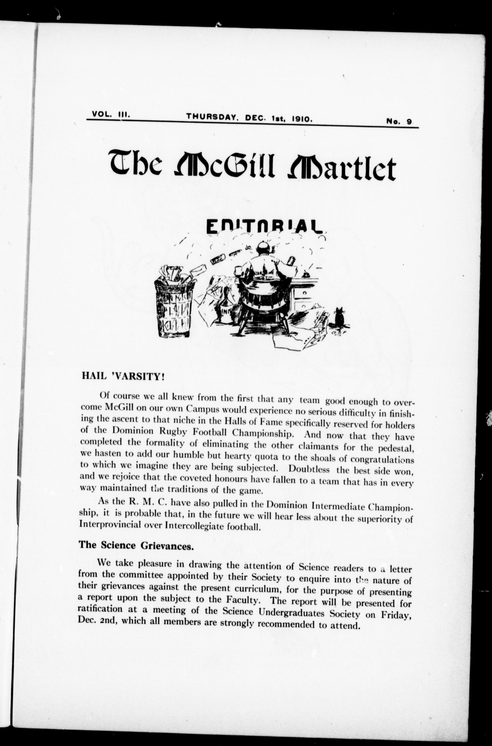 The McGill martlet : Vol. III, No. 9 (Dec. 1, 1910)