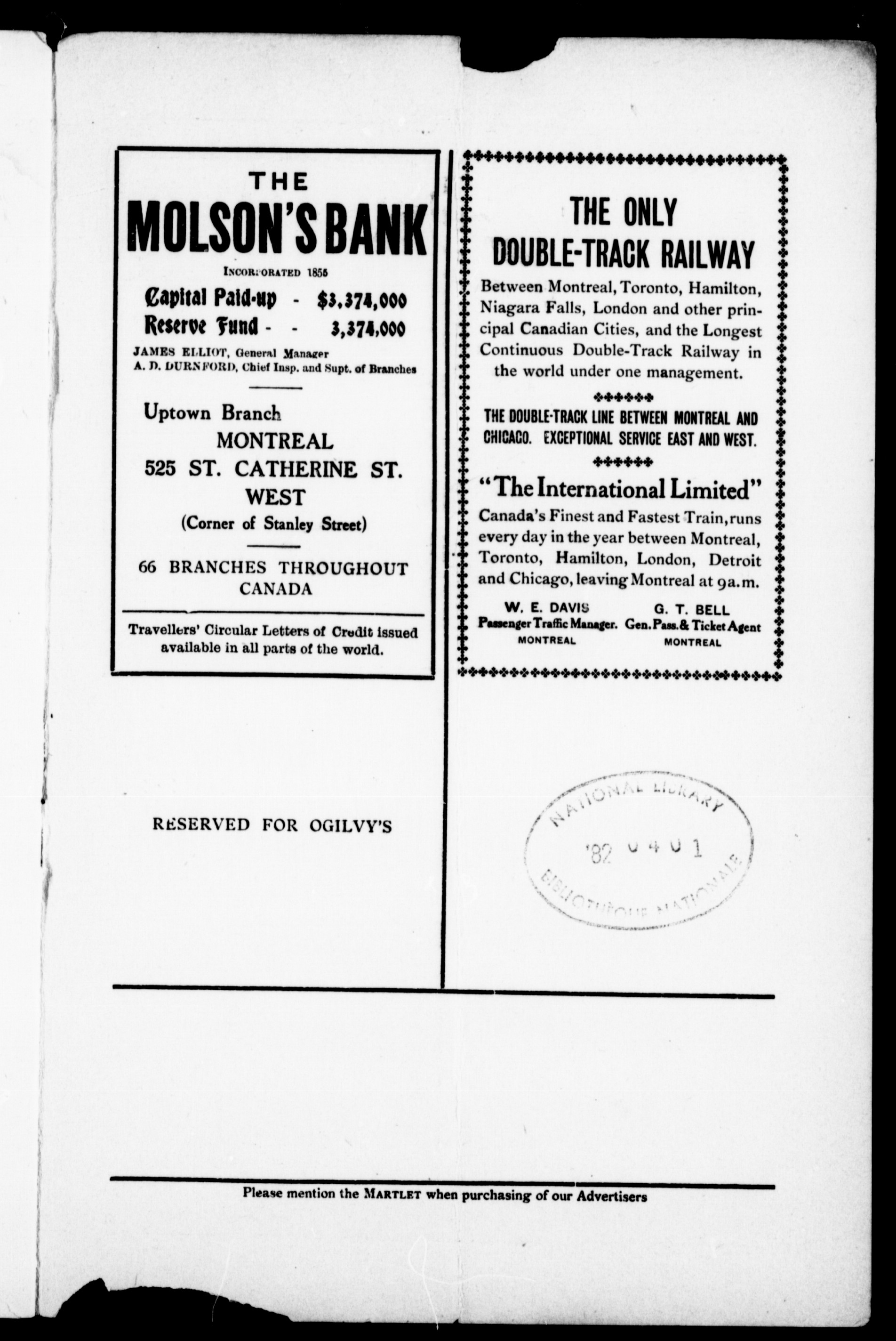 The Martlet : Vol. I, No. 2 (October 29, 1908)