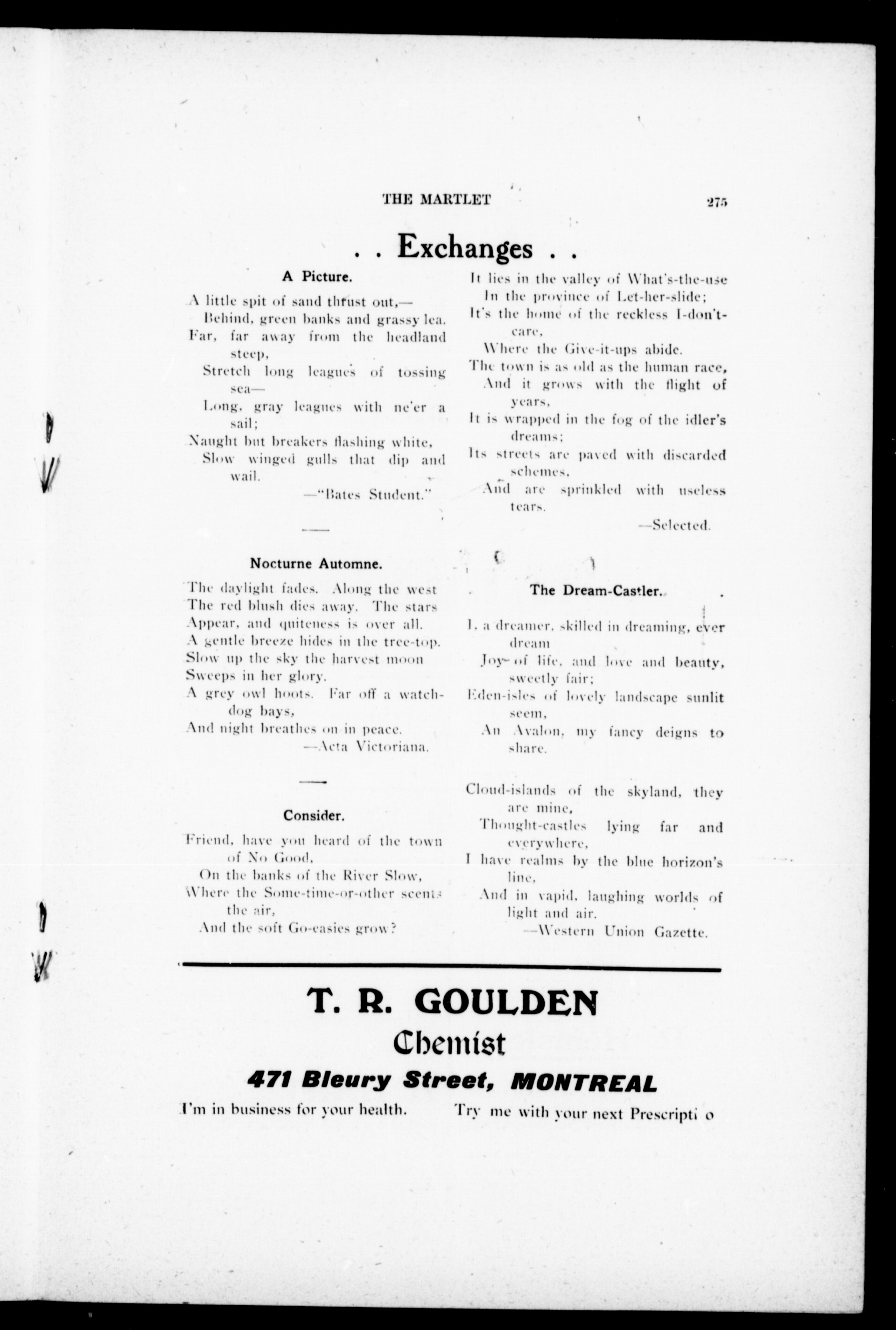 The Martlet : Vol. I, No. 12 (January 22, 1909)