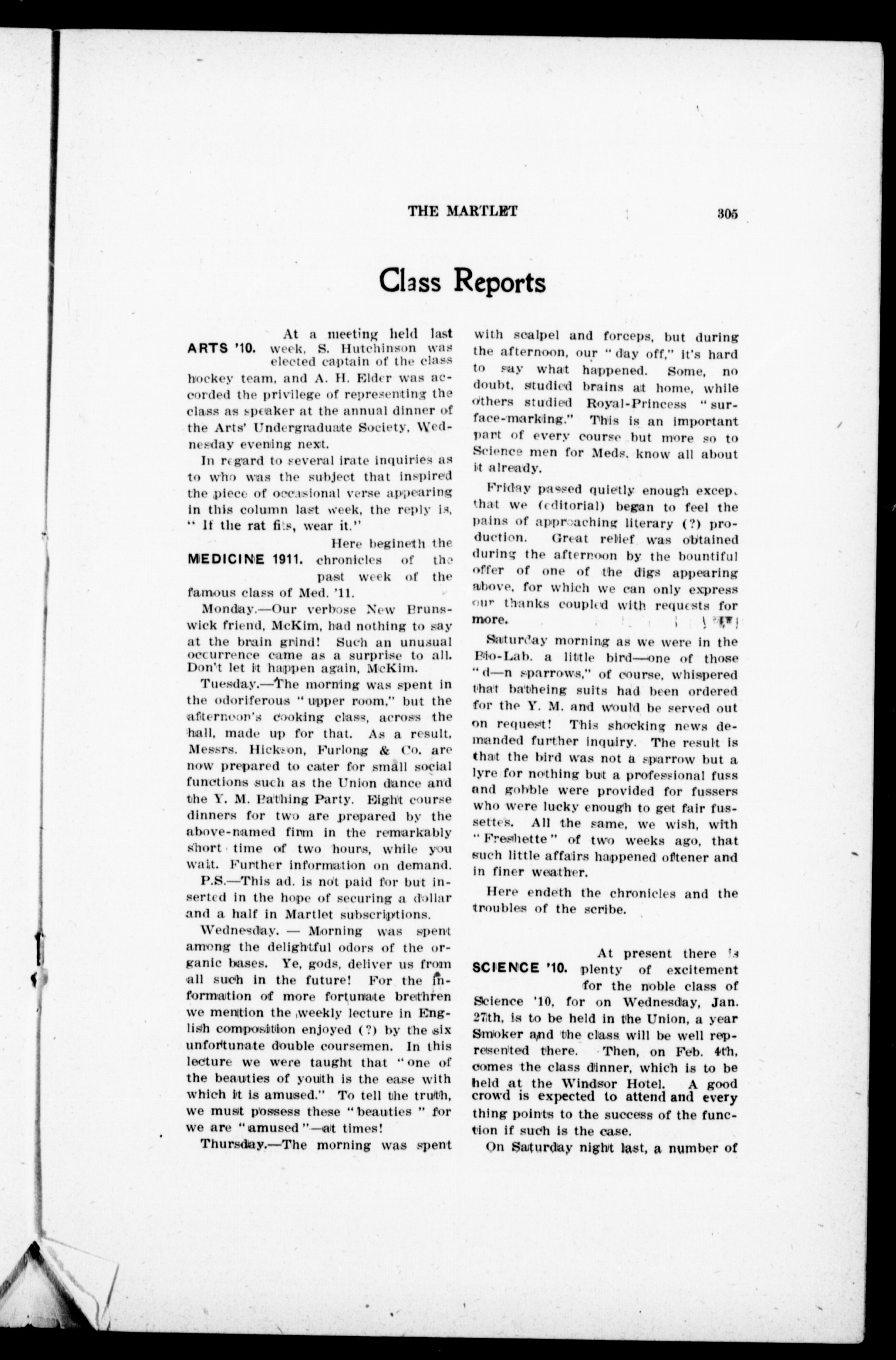The Martlet : Vol. I, No. 13 (January 29, 1909)