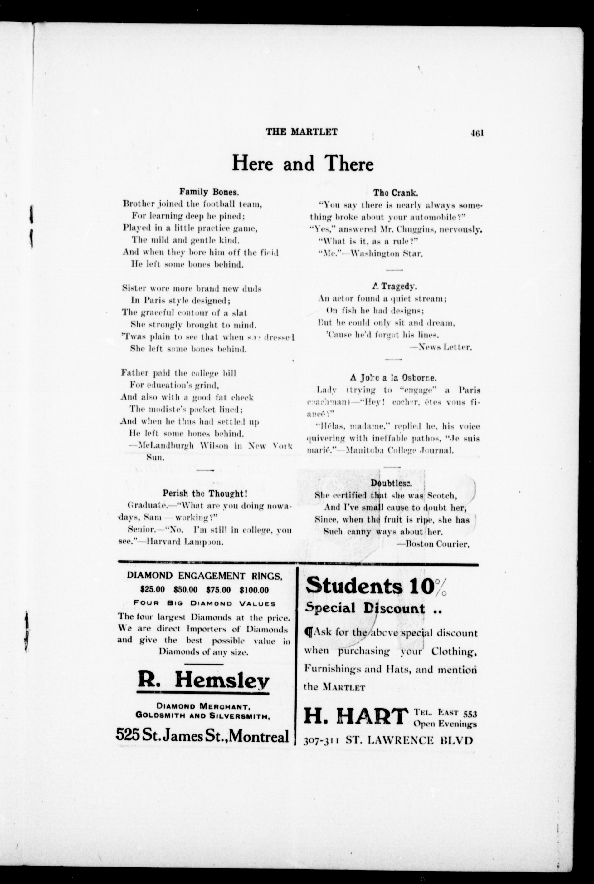 The Martlet : Vol. I, No. 19 (March 12, 1909)