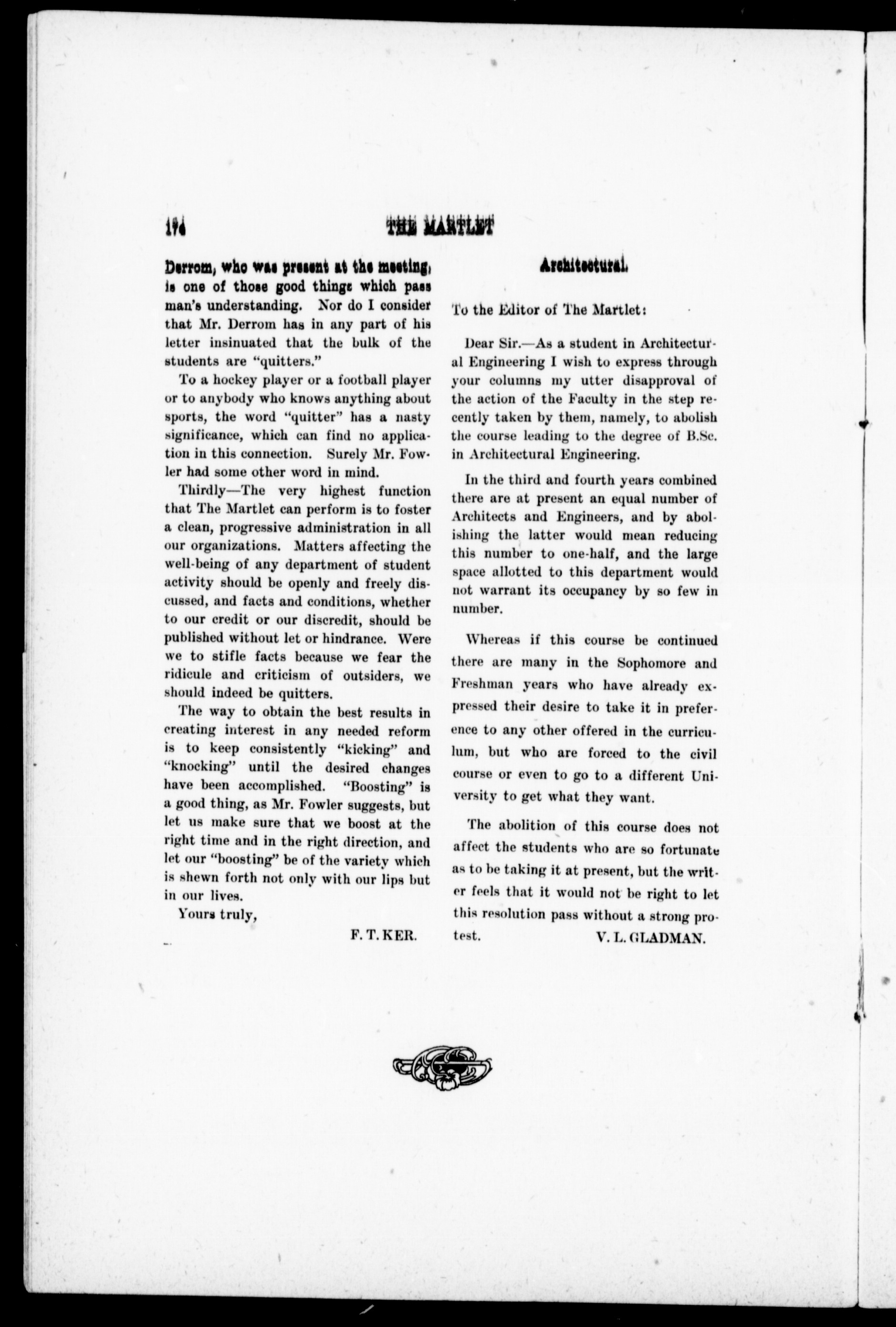 The Martlet : Vol. I, No. 8 (December 11, 1908)