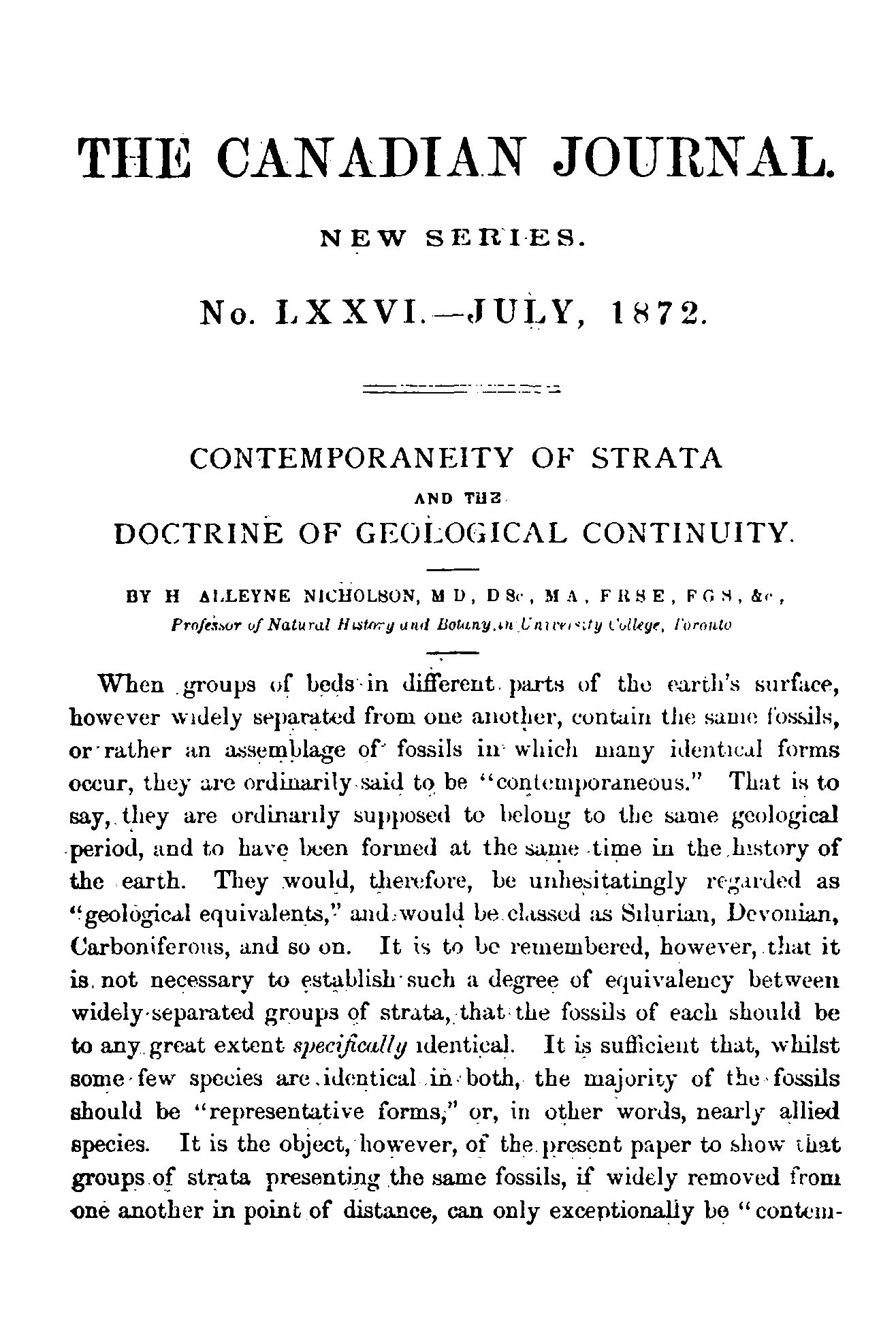 - The Canadian journal of science, literature, and history [New ser. v. 13, no. 4 (July 1872)]