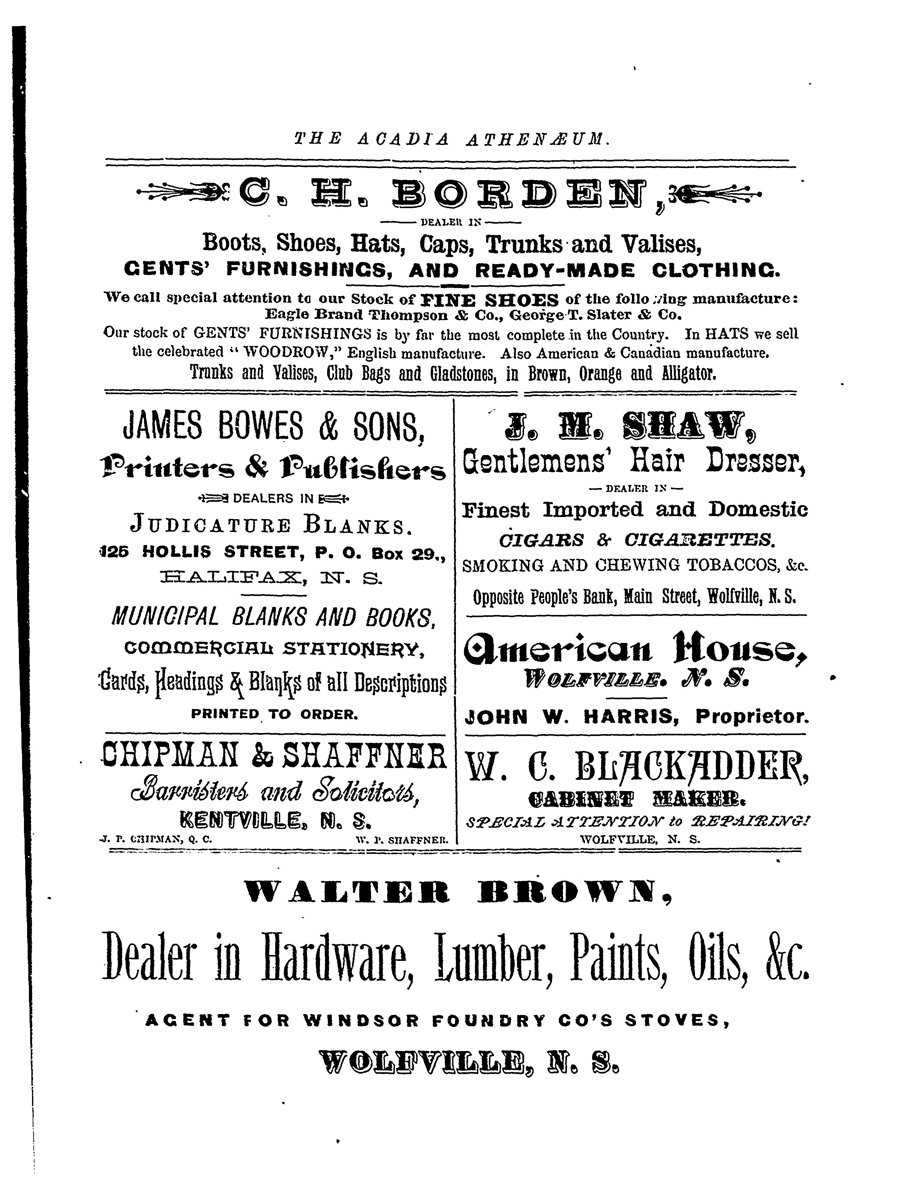 - Scanned from copies held at the Acadia University Archives & Special Collections