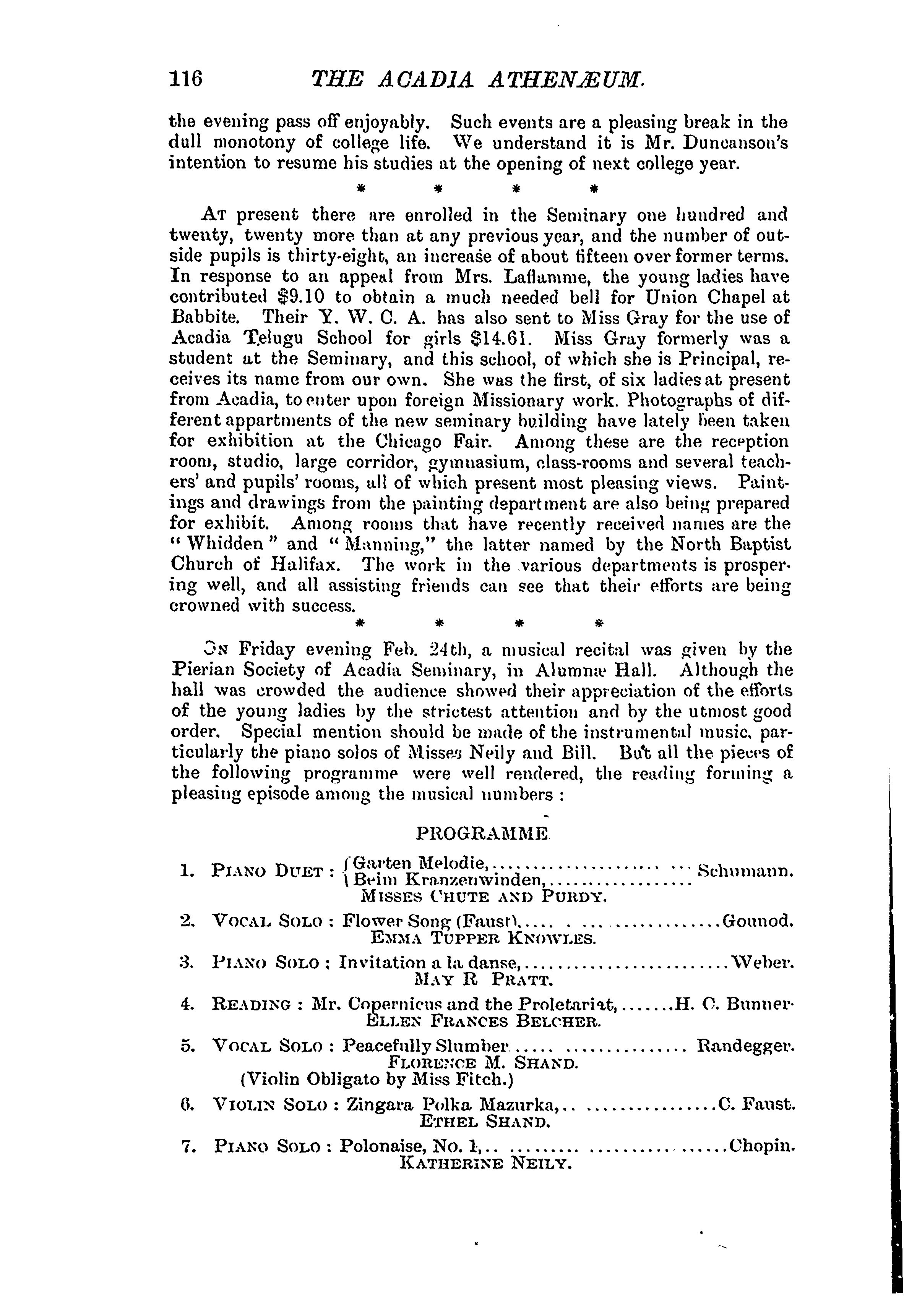 Acadia athenaeum : The Acadia athenaeum : Vol. 19, no. 5 (Mar. 1893)