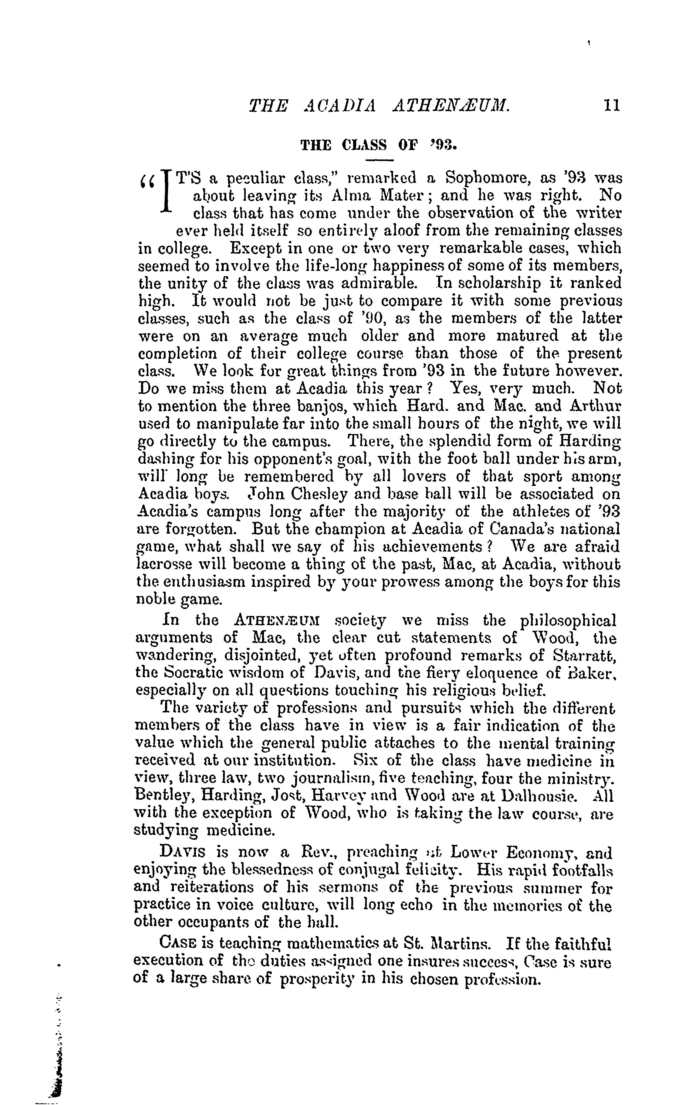 - The Acadia athenaeum : Vol. 20, no. 1 (Nov. 1893)
