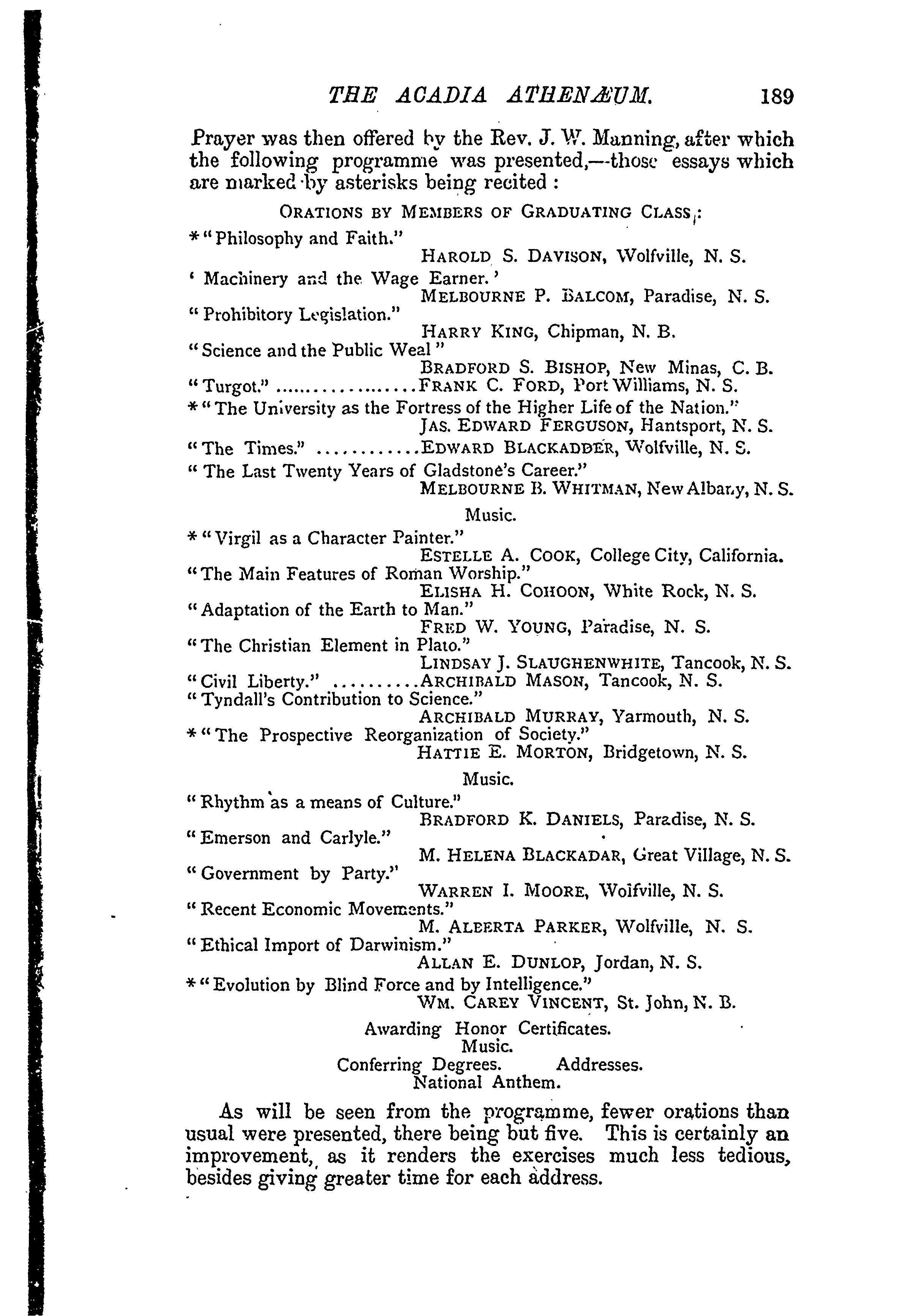 Scanned from copies held at the Acadia University Archives & Special Collections
