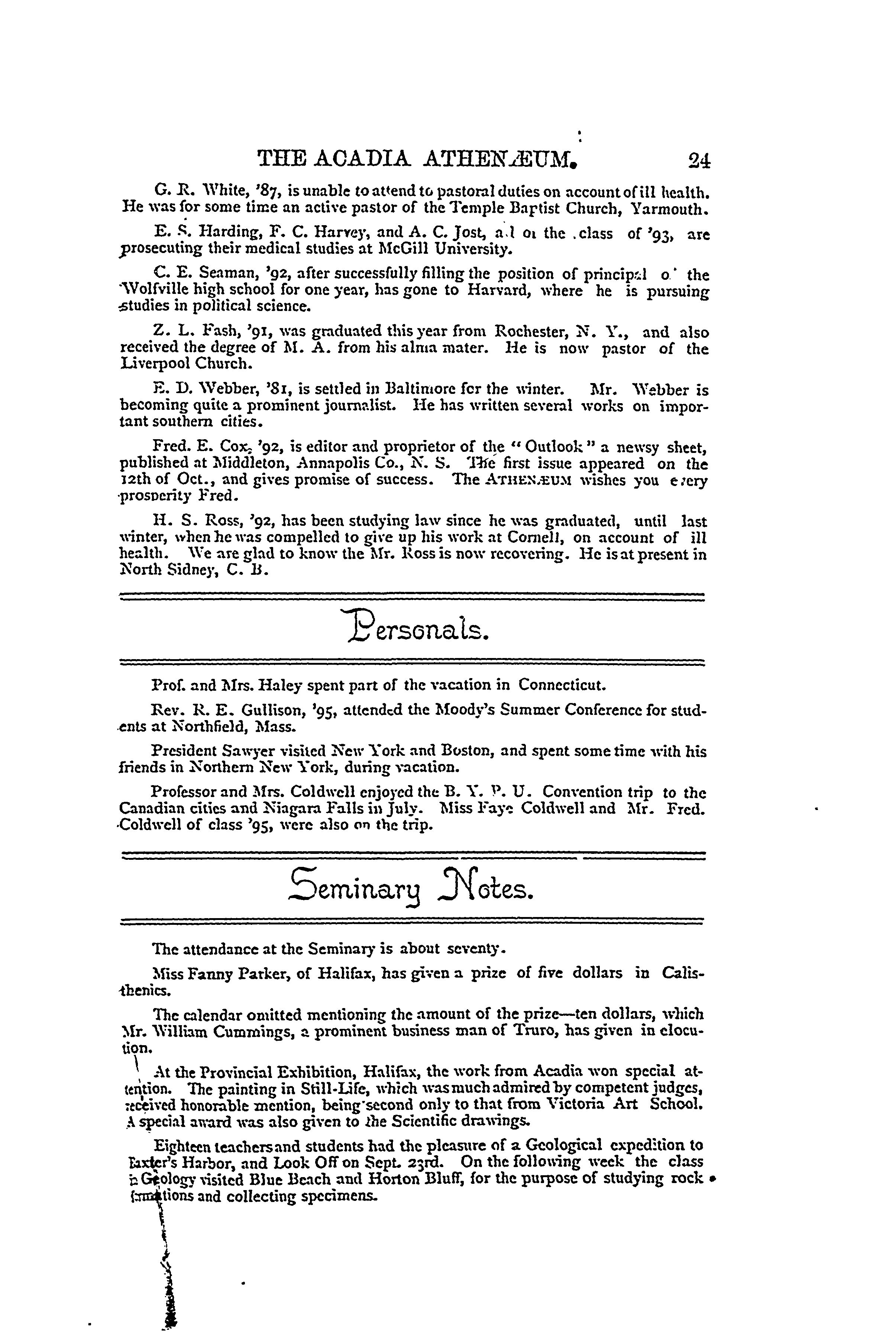 - The Acadia athenaeum : Vol. 21, no. 1 (Nov. 1895 [i.e. 1894])