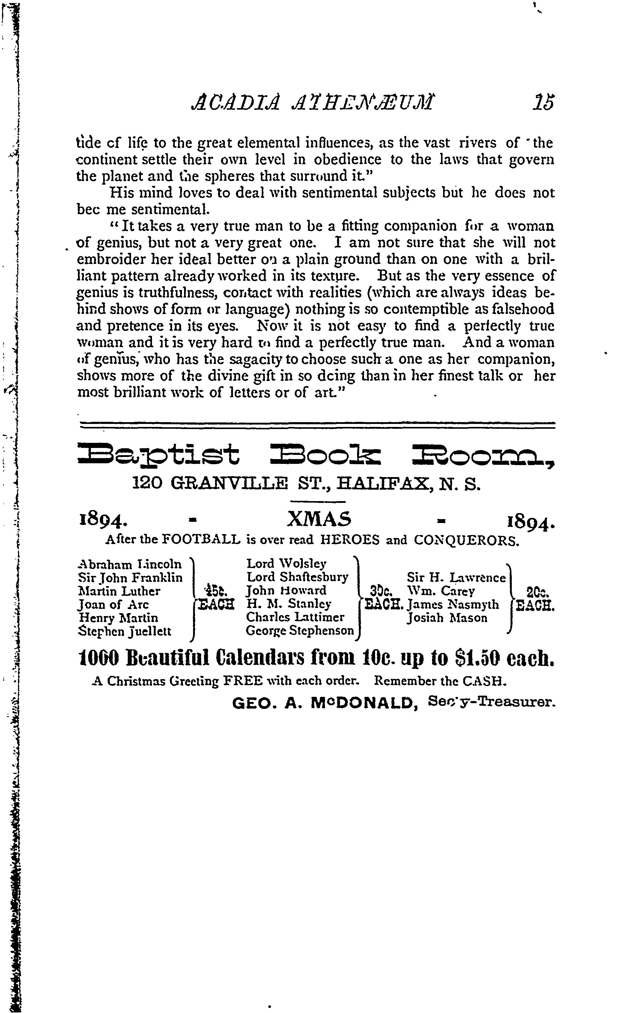 - The Acadia athenaeum : Vol. 21, no. 2 (Dec. 1895 [i.e. 1894])