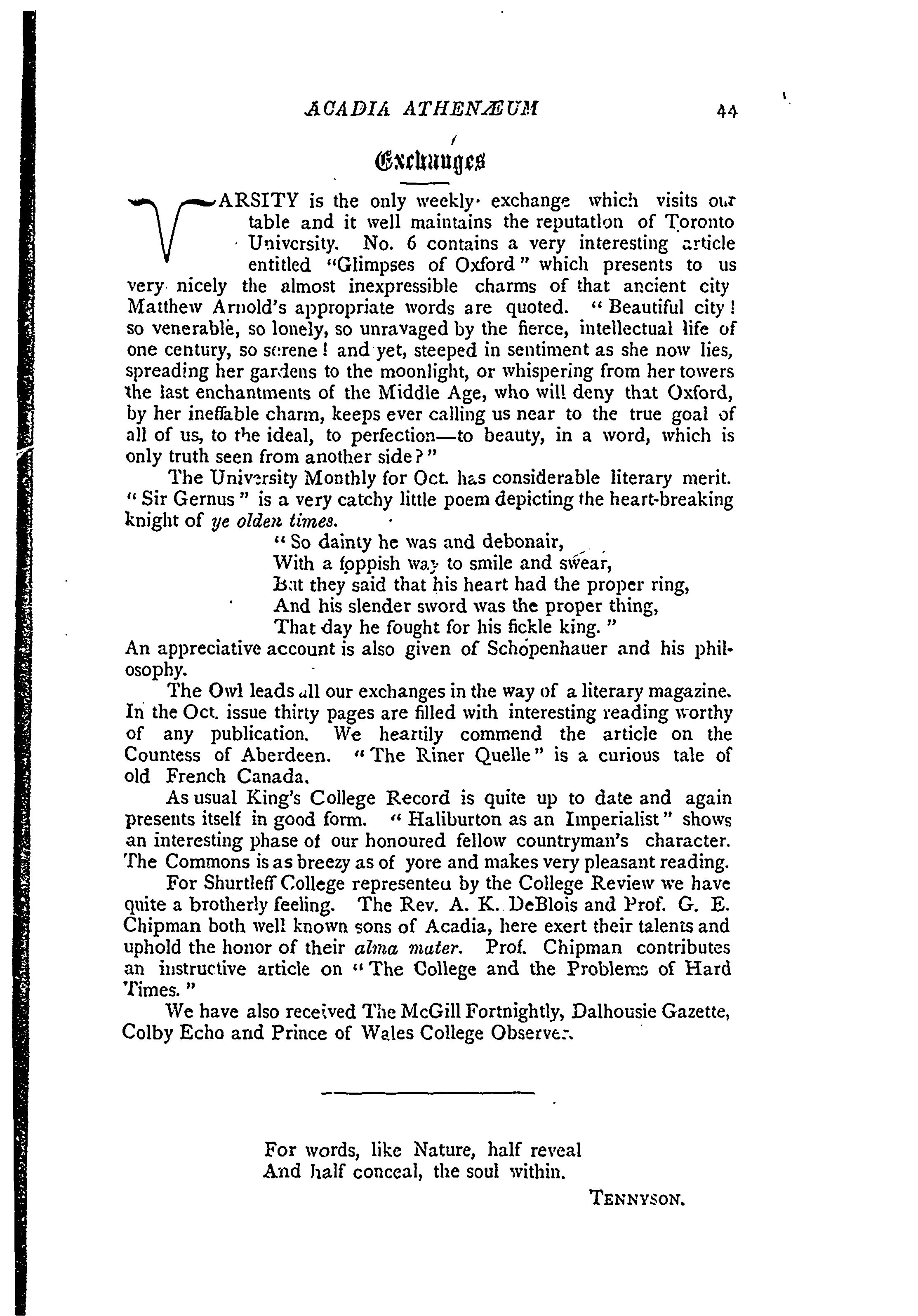 - Scanned from copies held at the Acadia University Archives & Special Collections
