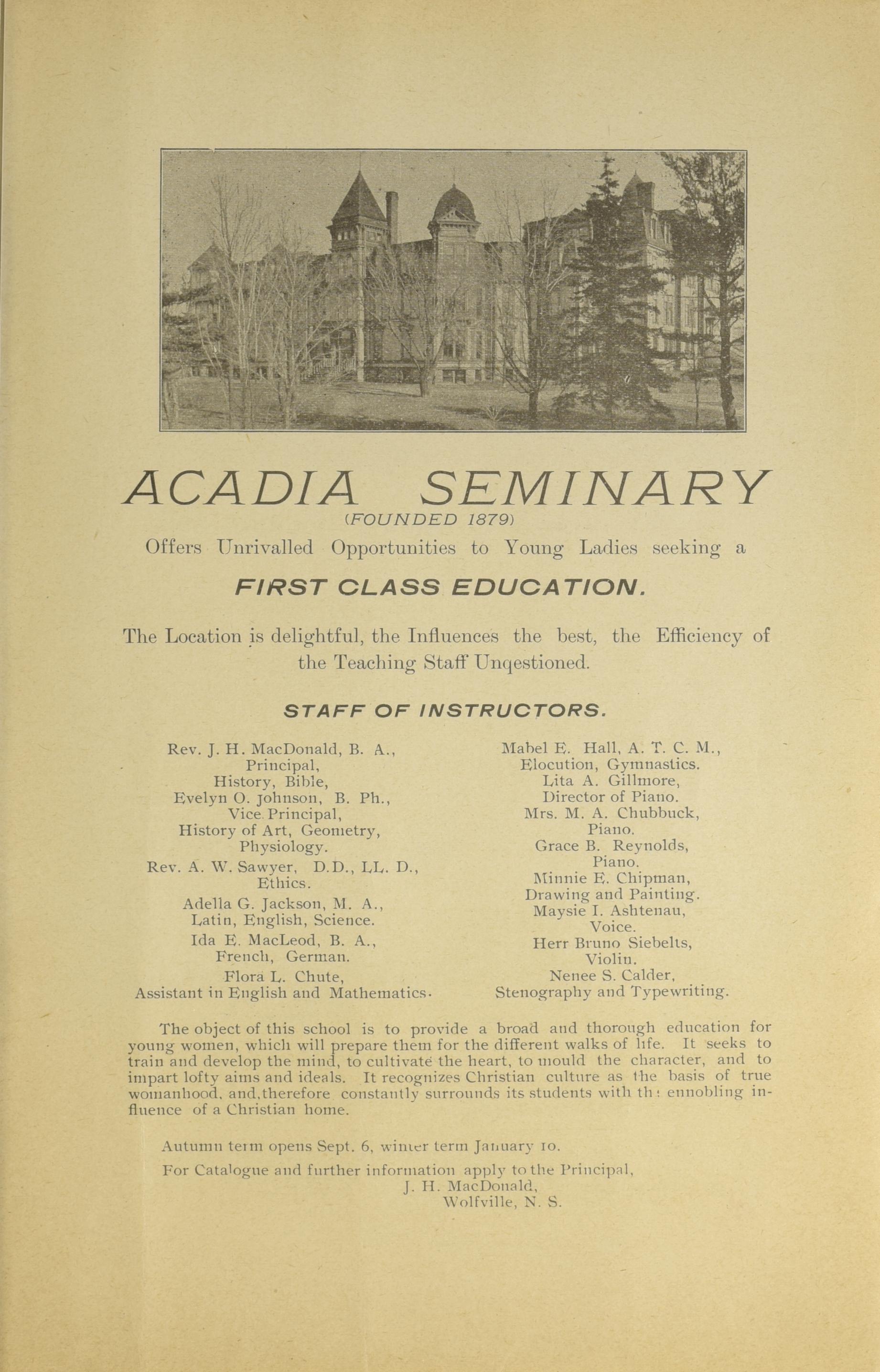 Scanned from copies held at the Acadia University Archives & Special Collections