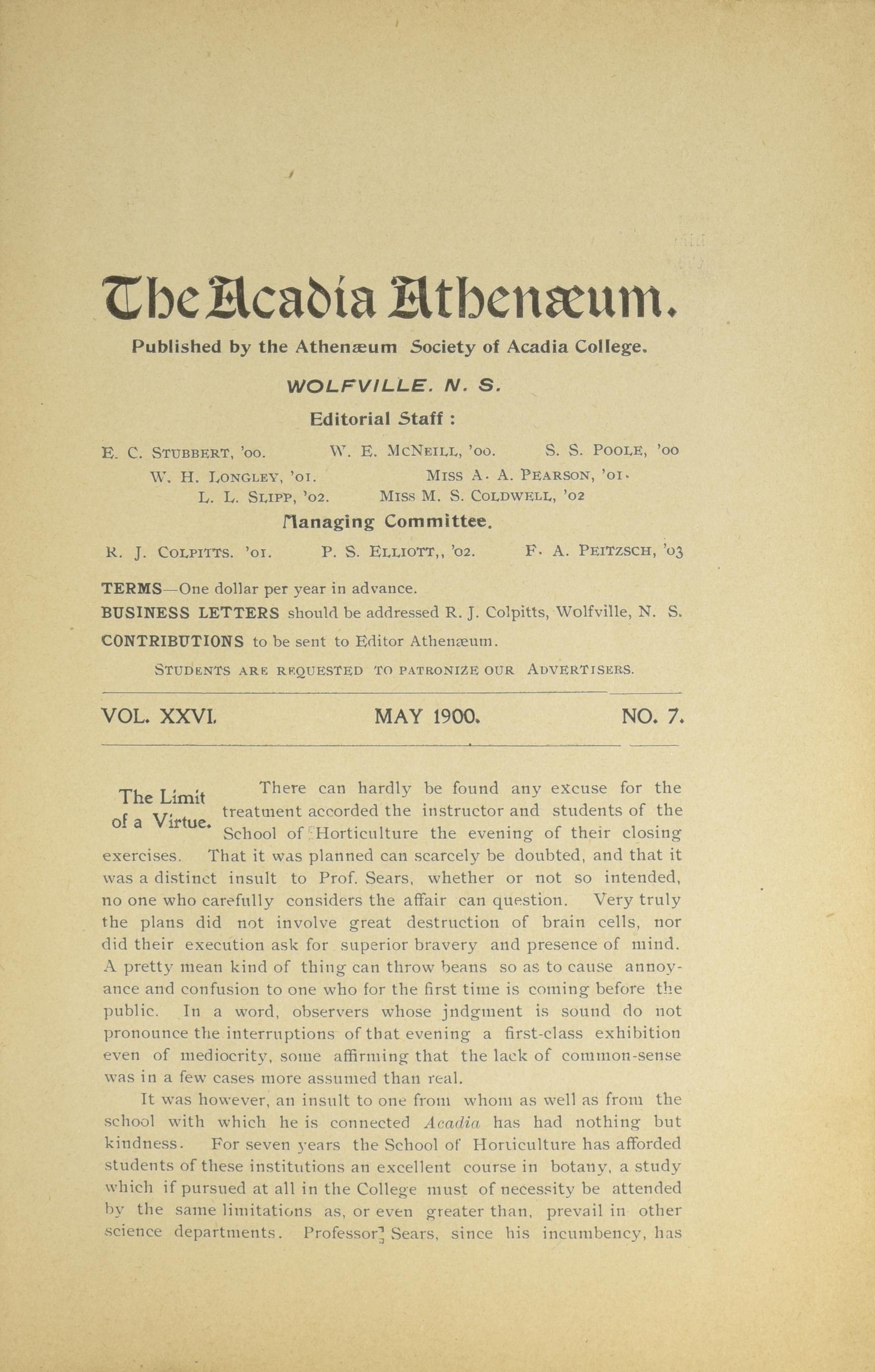 Acadia athenaeum : The Acadia athenaeum : Vol. 26, no. 7 (May 1900)