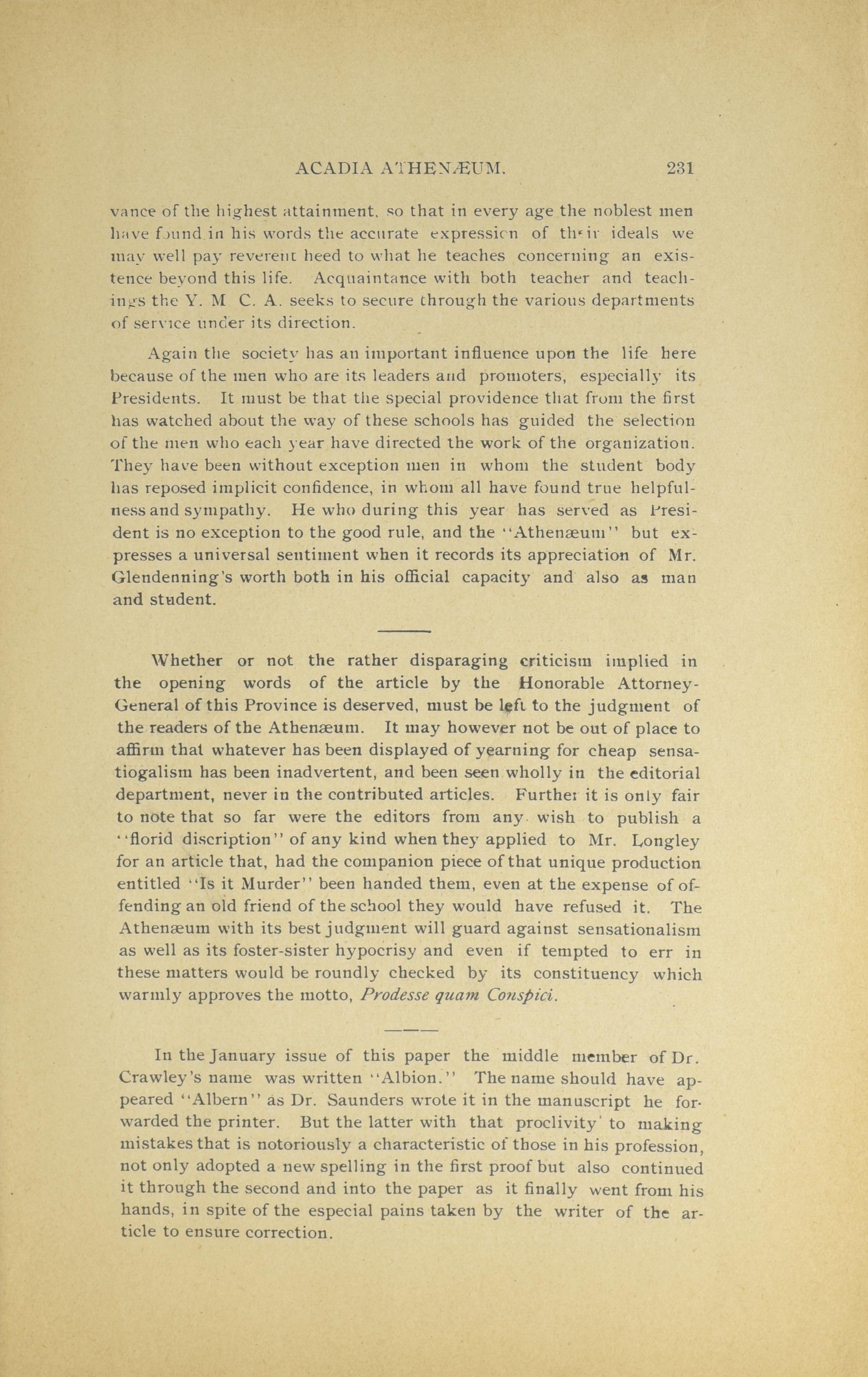 - Wolfville, N.S.: Athenaeum Society, [1900]