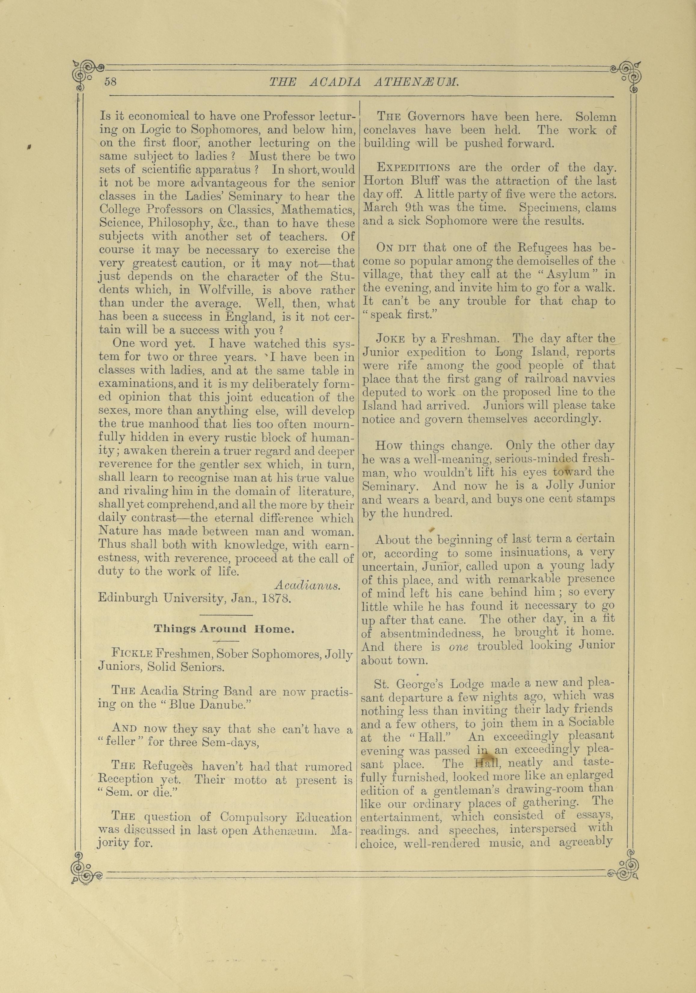 - Scanned from copies held at the Acadia University Archives & Special Collections