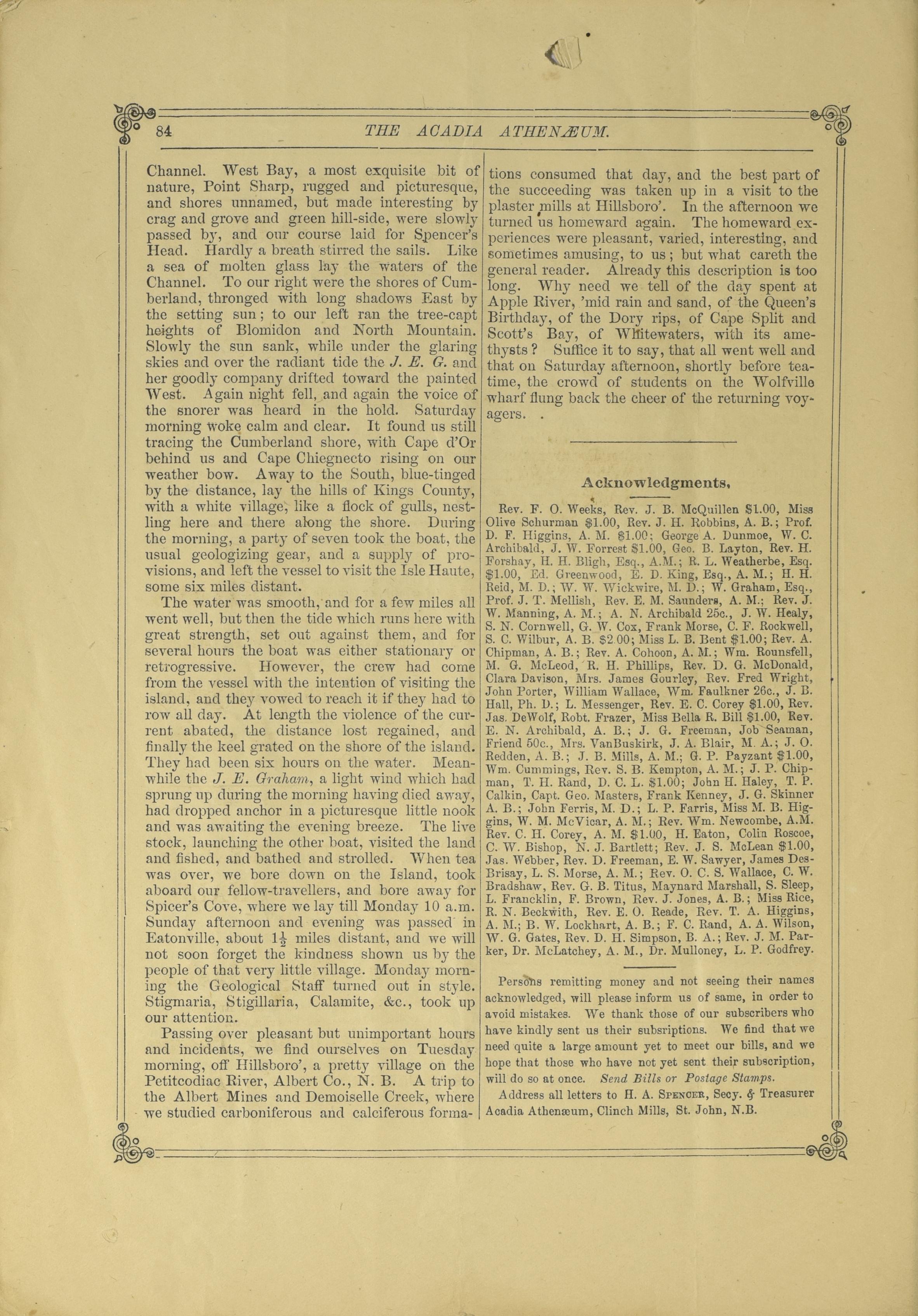 - Scanned from copies held at the Acadia University Archives & Special Collections