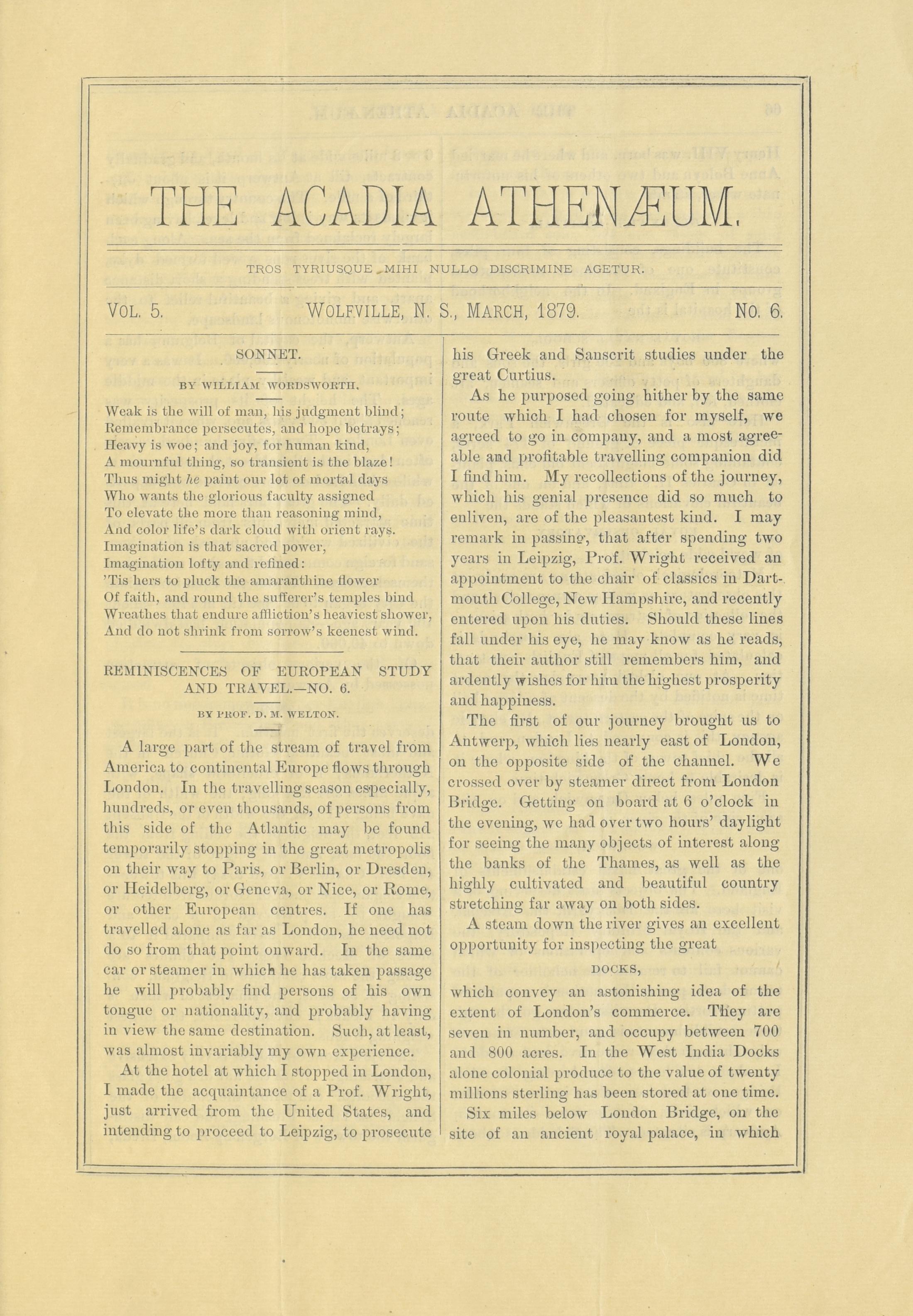 - The Acadia athenaeum : Vol. 5, no. 6 (Mar. 1879)