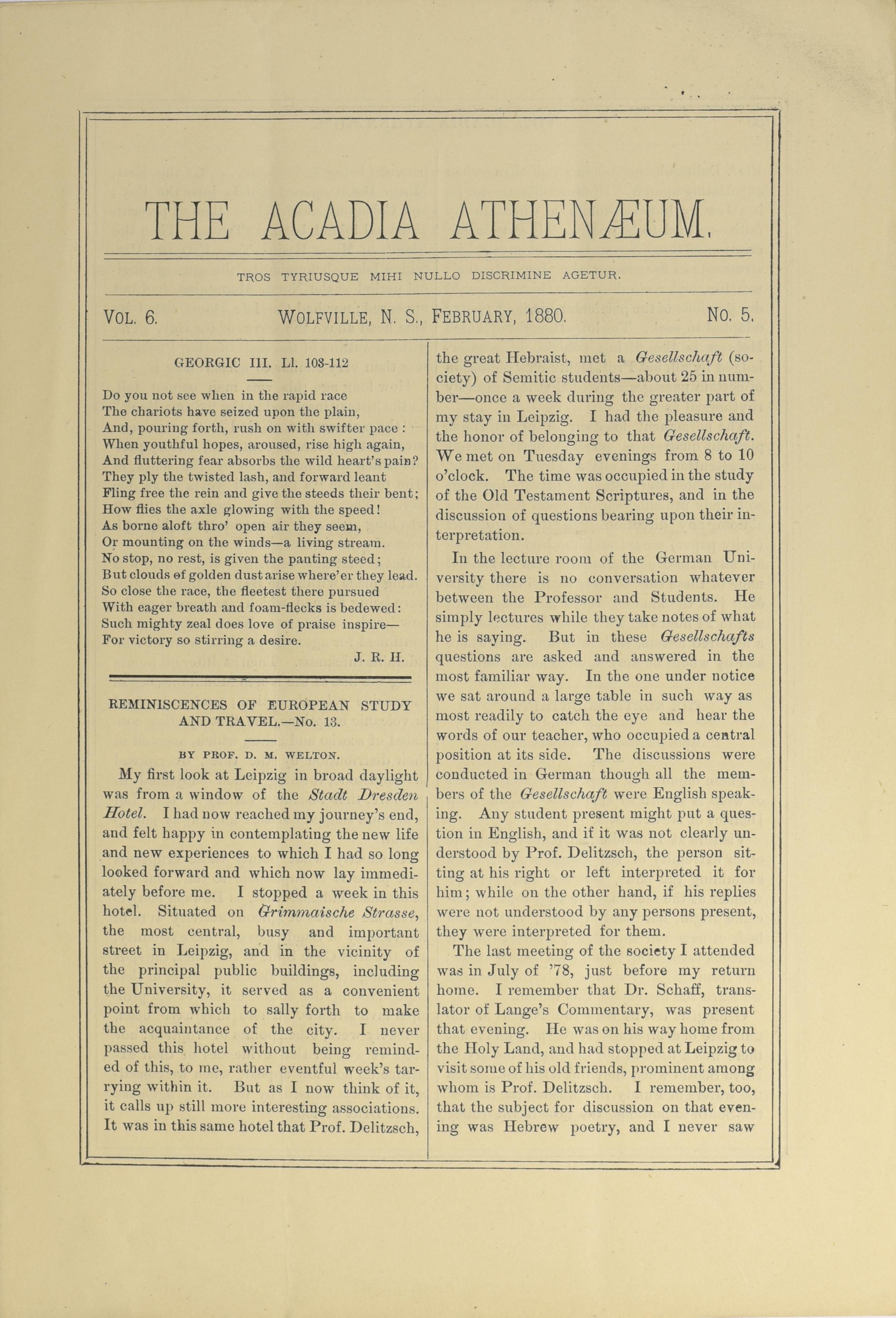 - The Acadia athenaeum : Vol. 6, no. 5 (Feb. 1880)
