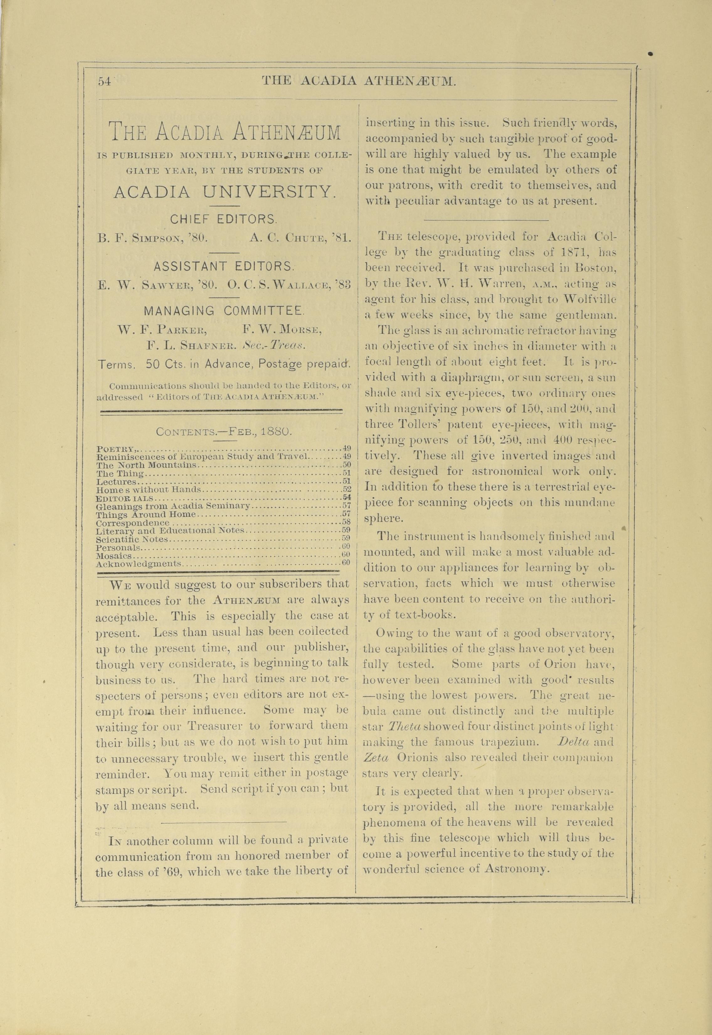 - The Acadia athenaeum : Vol. 6, no. 5 (Feb. 1880)