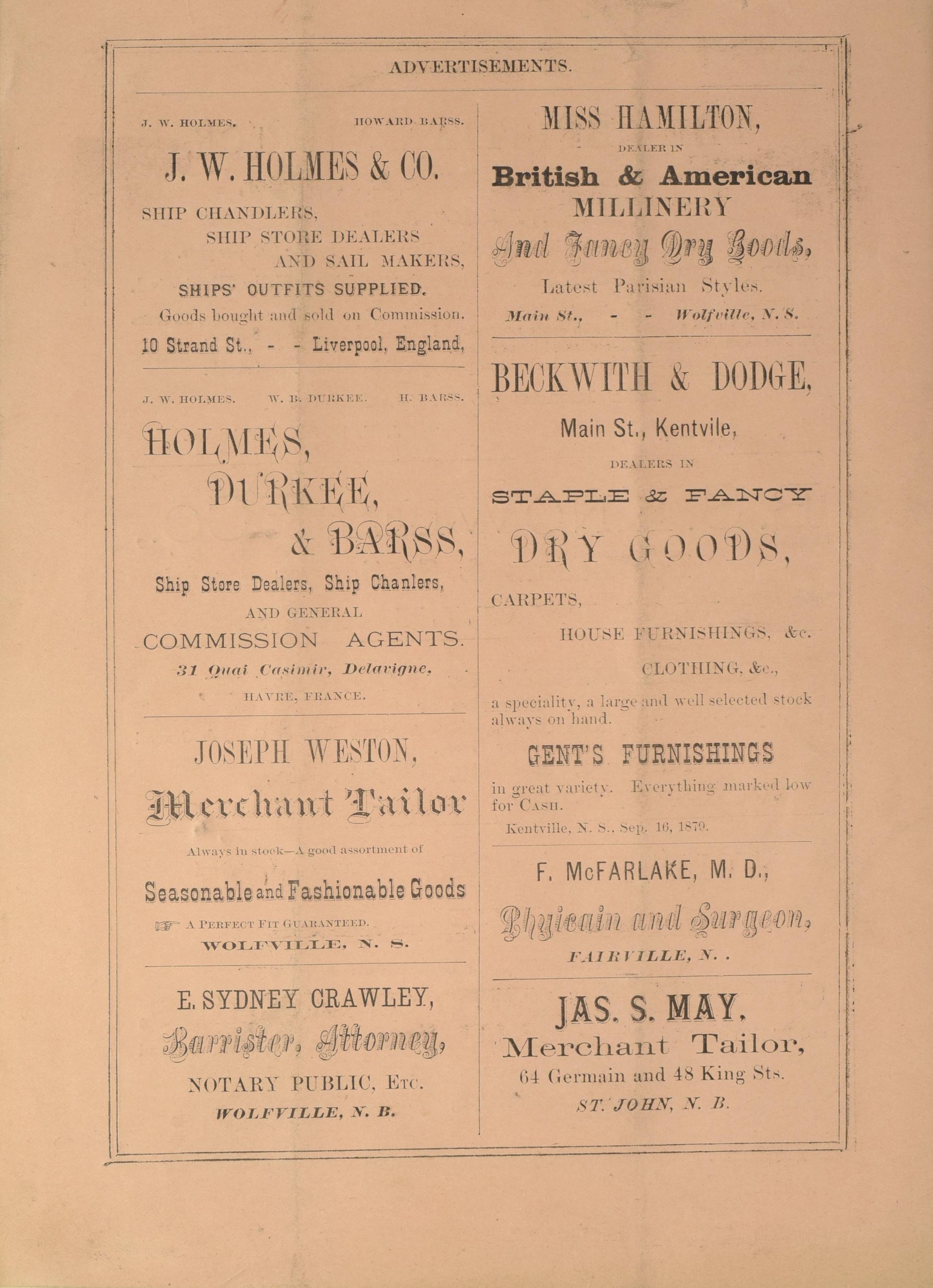 - Scanned from copies held at the Acadia University Archives & Special Collections