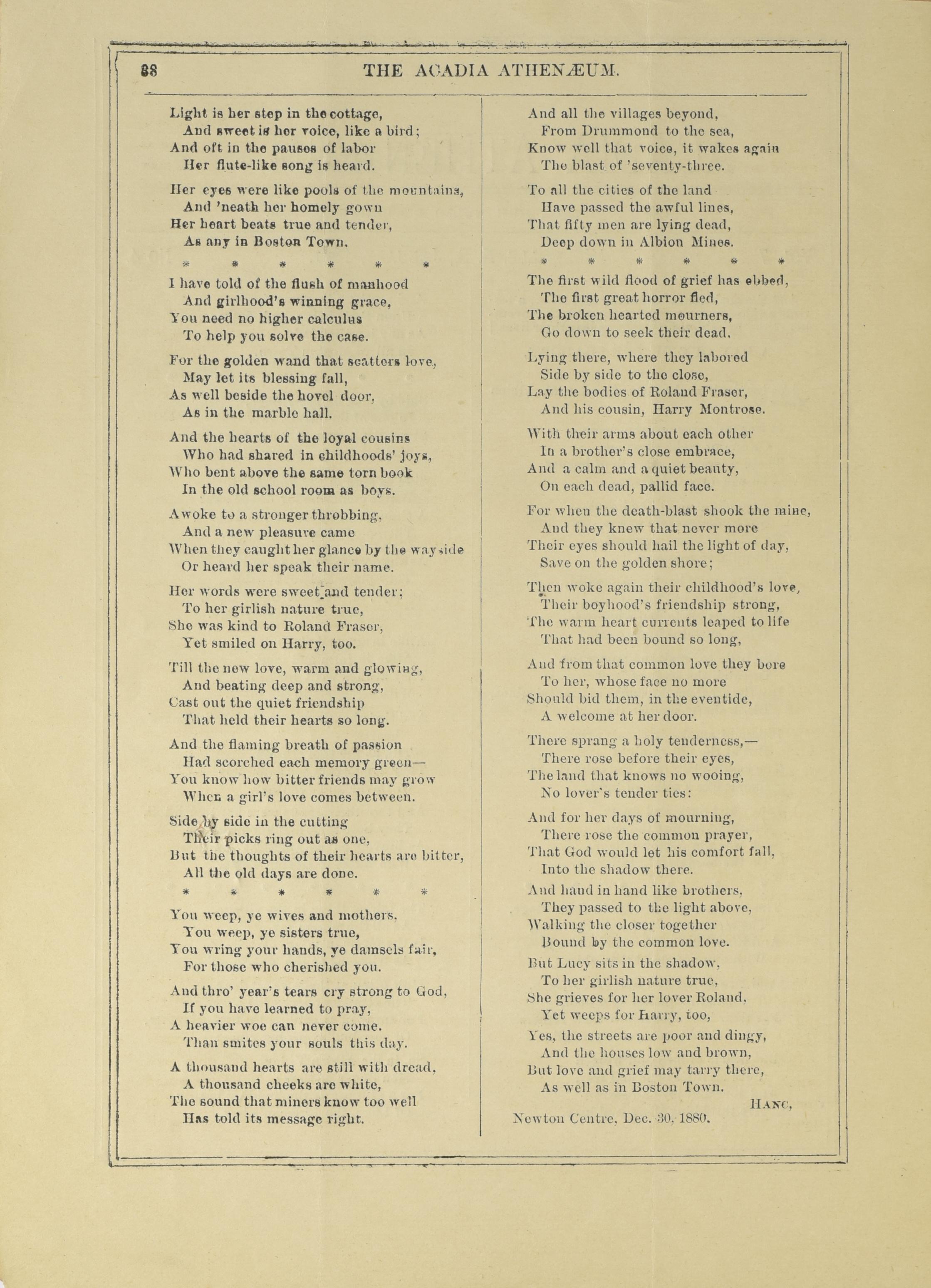 - Scanned from copies held at the Acadia University Archives & Special Collections