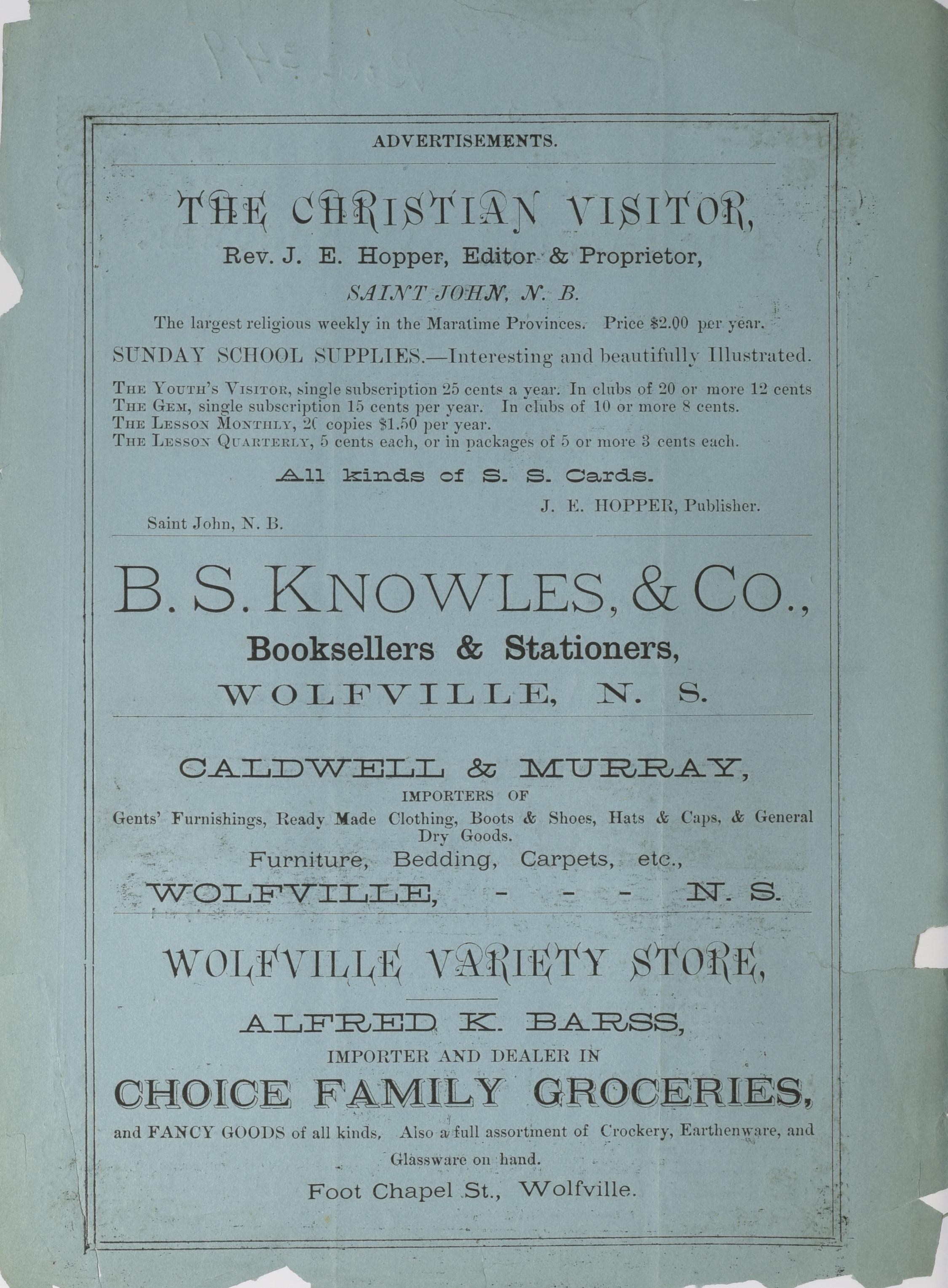 - Scanned from copies held at the Acadia University Archives & Special Collections
