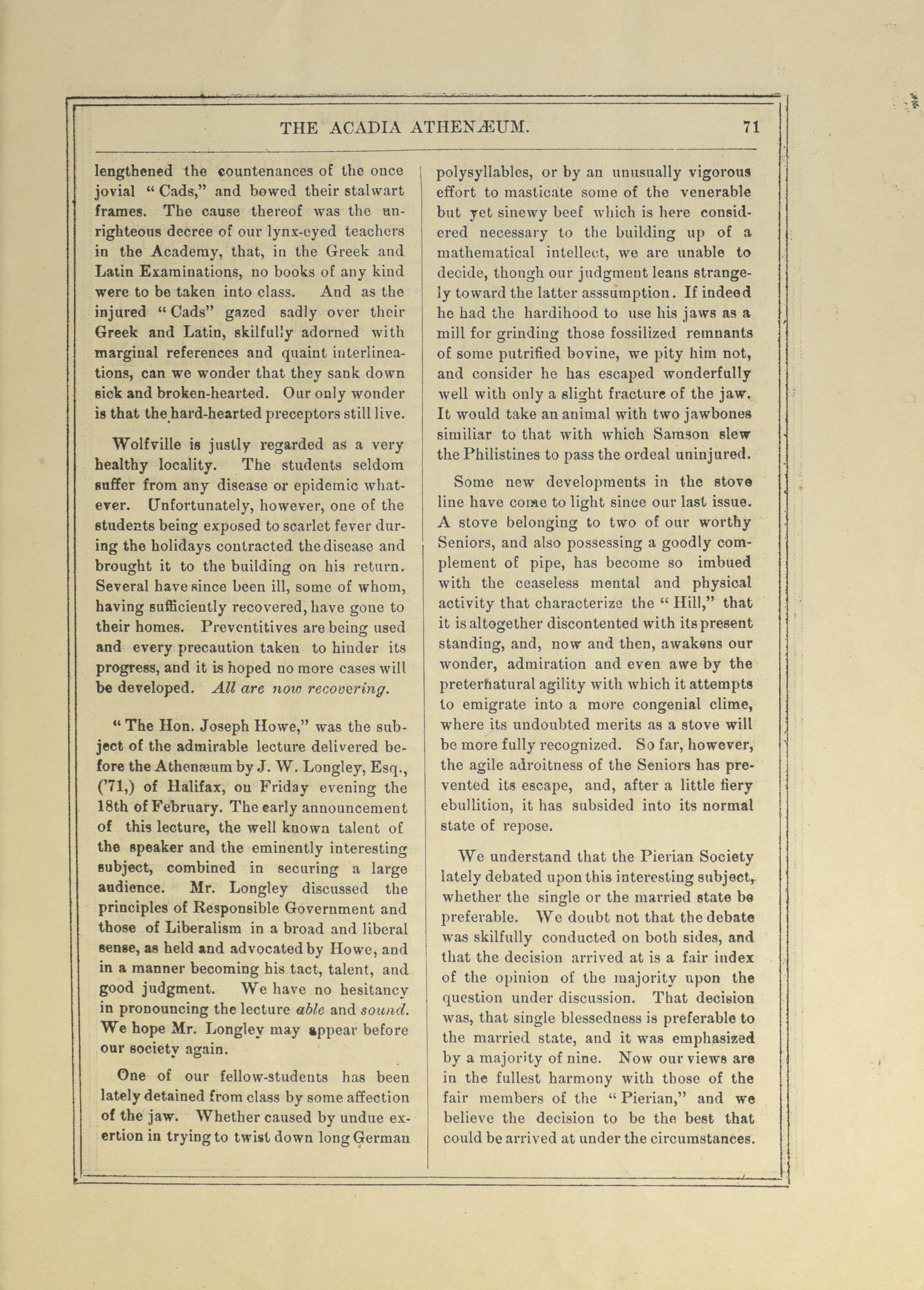 - The Acadia athenaeum : Vol. 7, no. 6 (Mar. 1881)