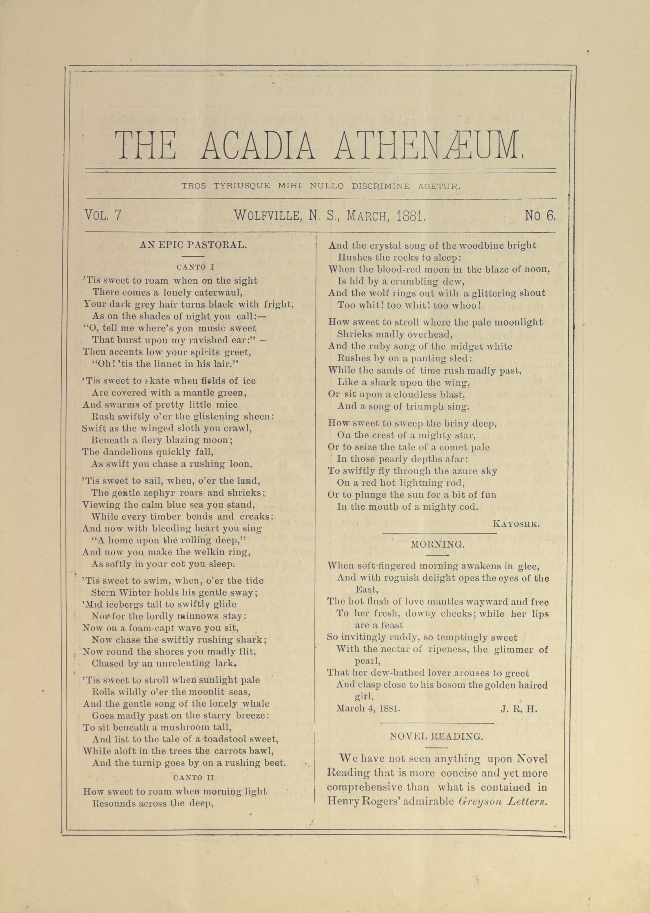 - The Acadia athenaeum : Vol. 7, no. 6 (Mar. 1881)