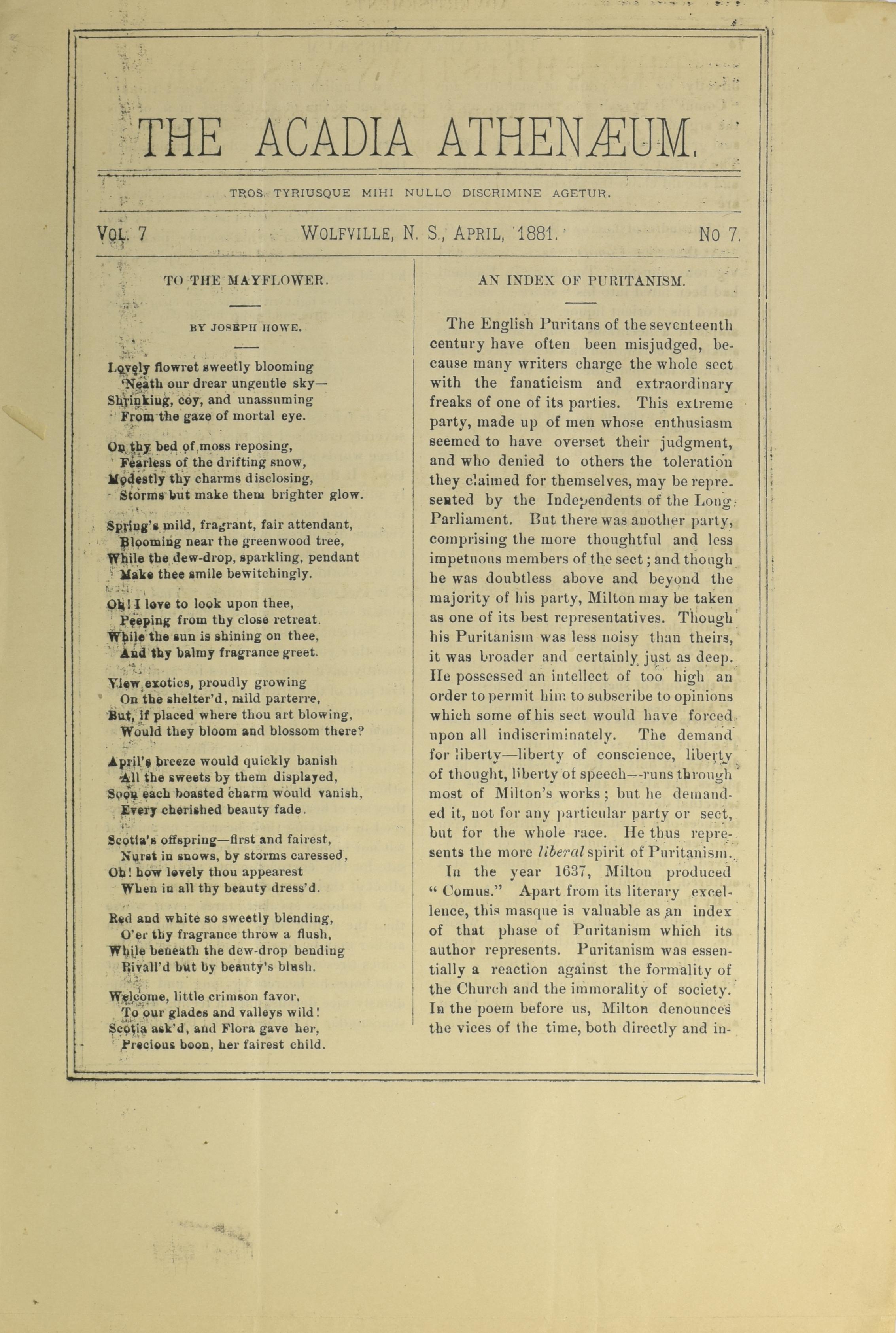 Acadia athenaeum : The Acadia athenaeum : Vol. 7, no. 7 (Apr. 1881)