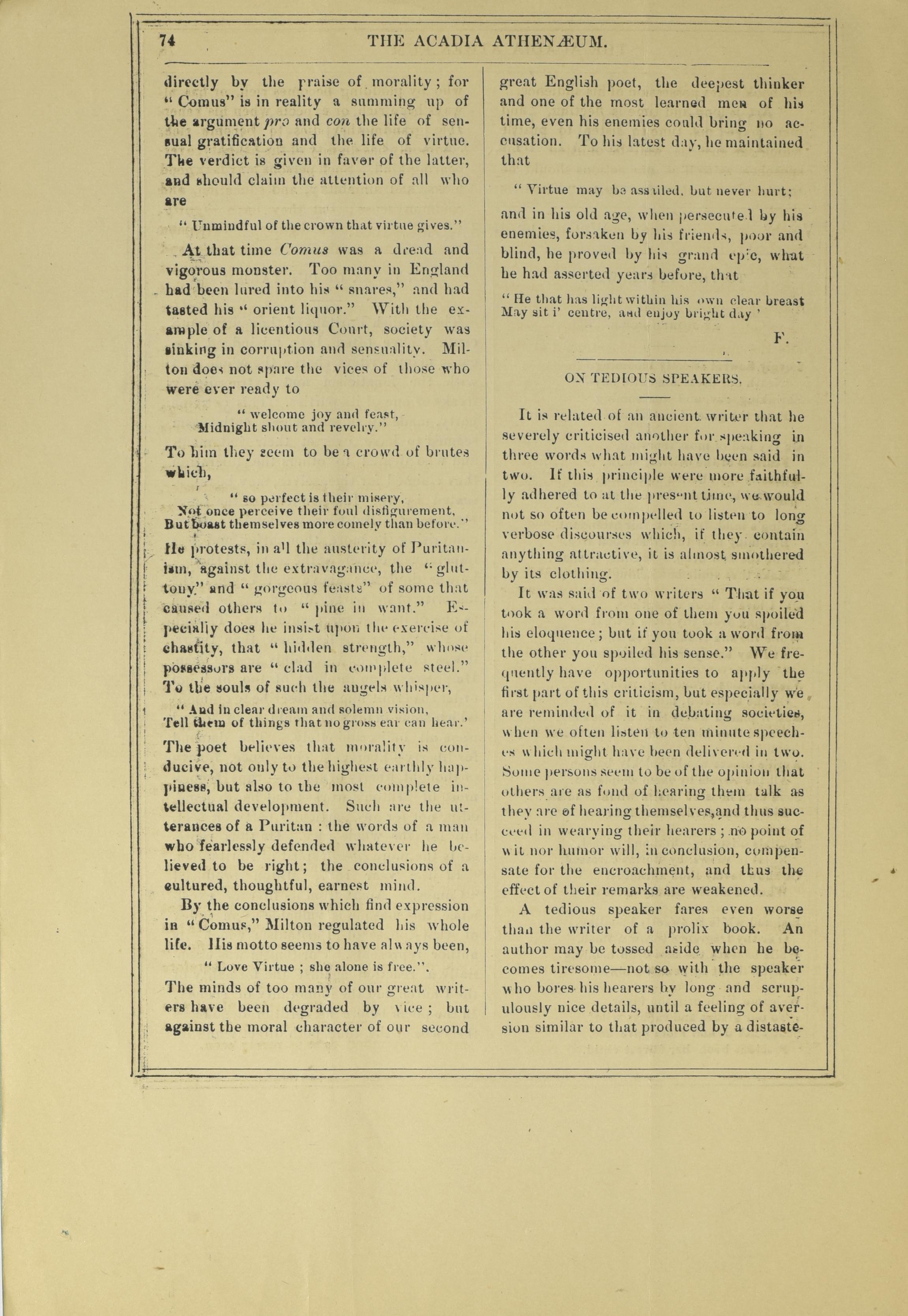 Scanned from copies held at the Acadia University Archives & Special Collections