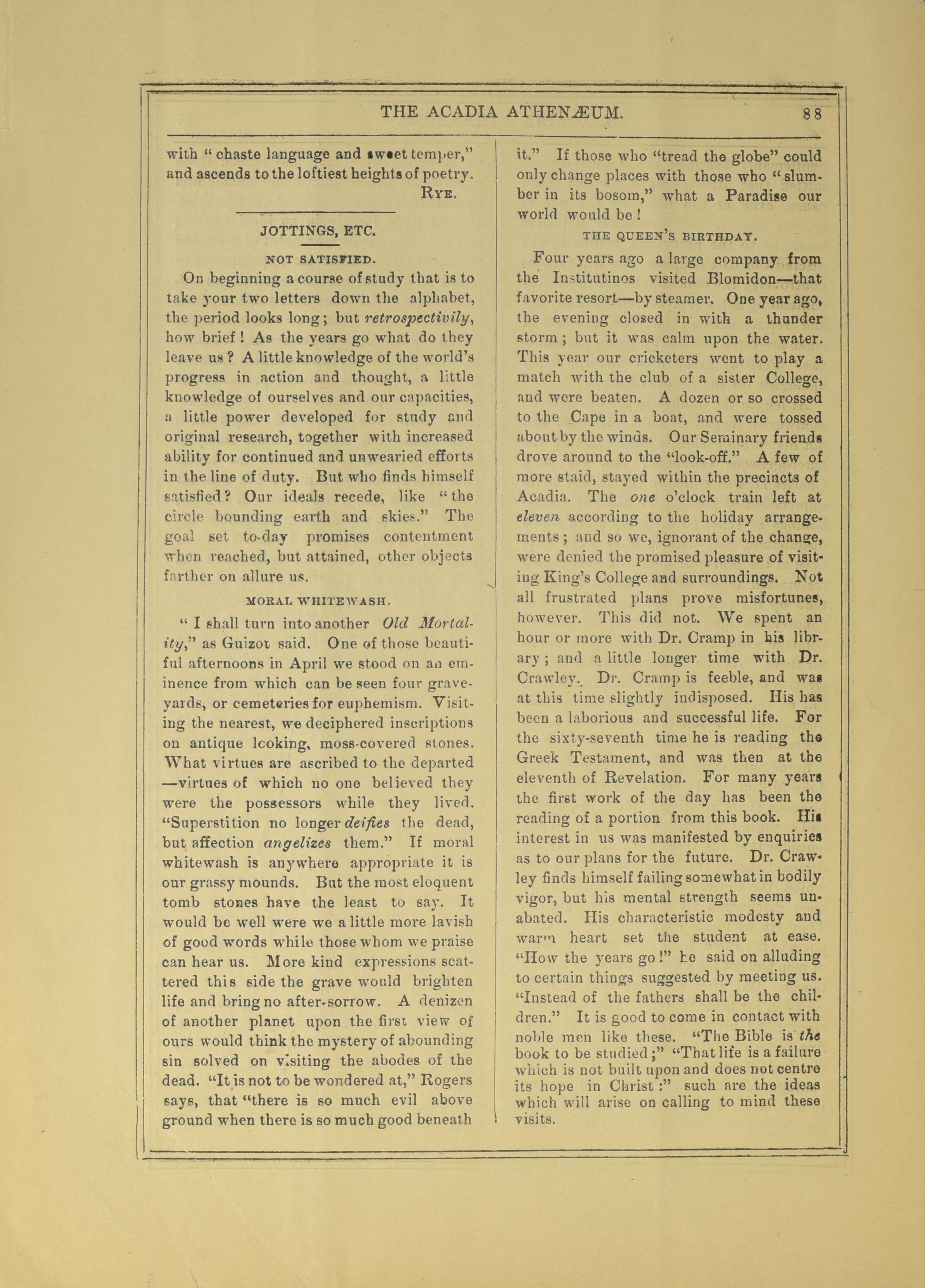 - Scanned from copies held at the Acadia University Archives & Special Collections