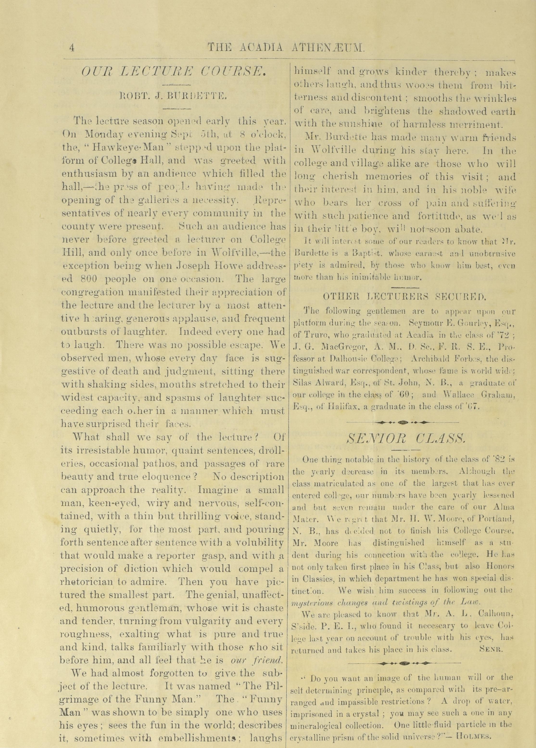 - The Acadia athenaeum : Vol. 8, no. 1 (Oct. 1881)