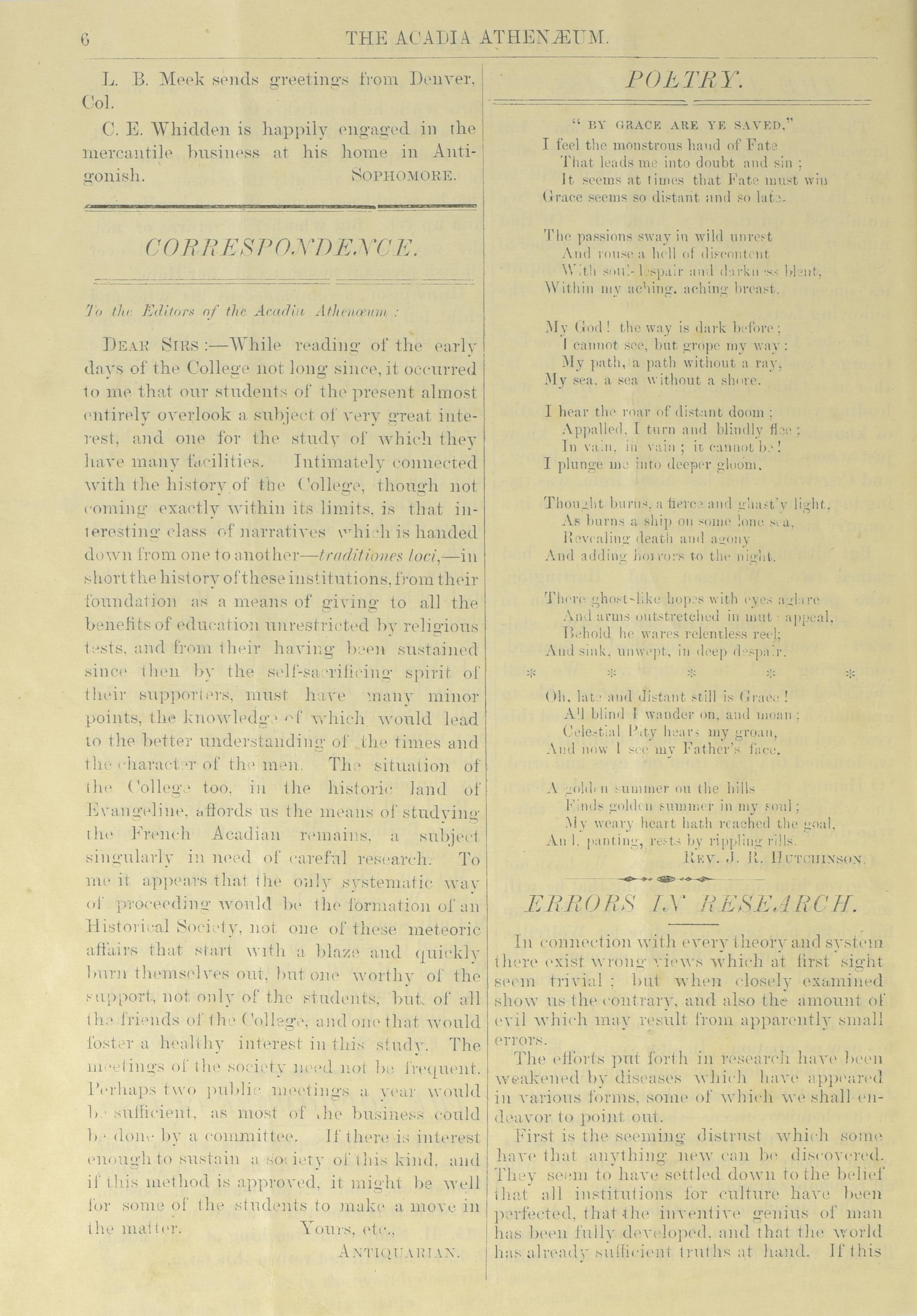 Scanned from copies held at the Acadia University Archives & Special Collections