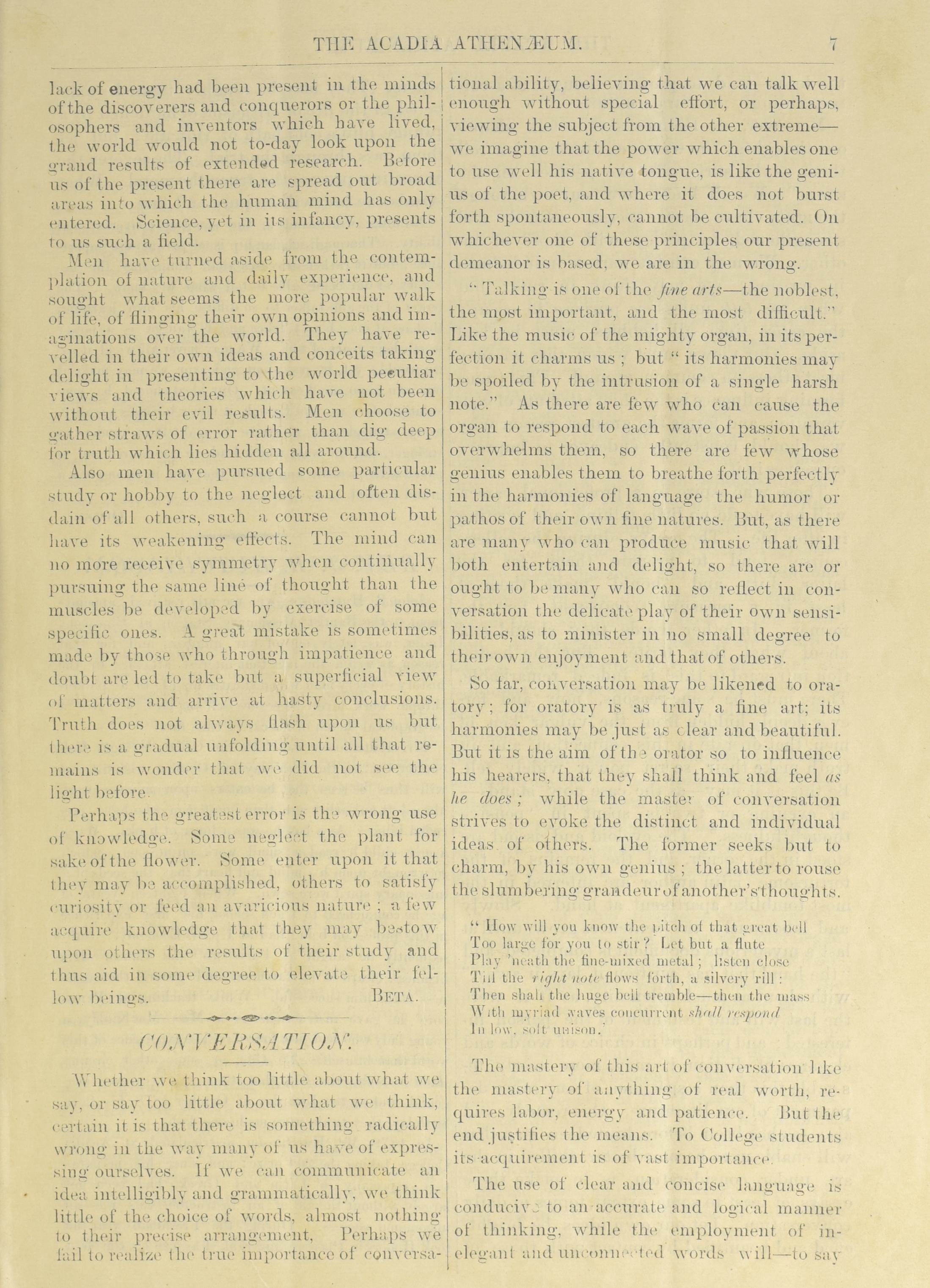 - The Acadia athenaeum : Vol. 8, no. 1 (Oct. 1881)